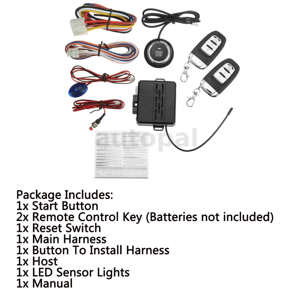 Car Alarm Security Ignition Remote Control Engine Start Push Button Sensor Light