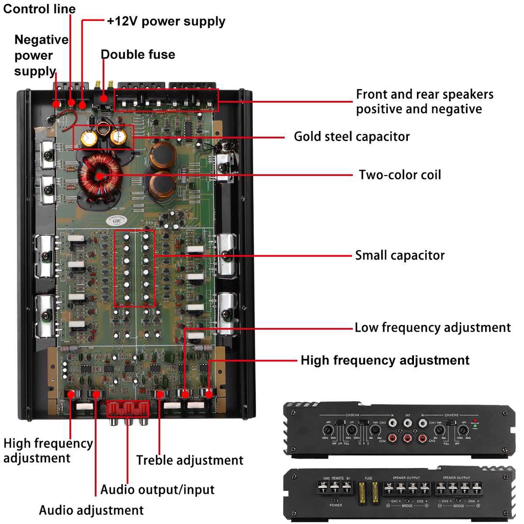 Car Amplifier 9900W 12V Multichannel Powerful Car Audio Subwoofer Aluminum Alloy Vehicle Power Stereo Amp Car Sound Amp