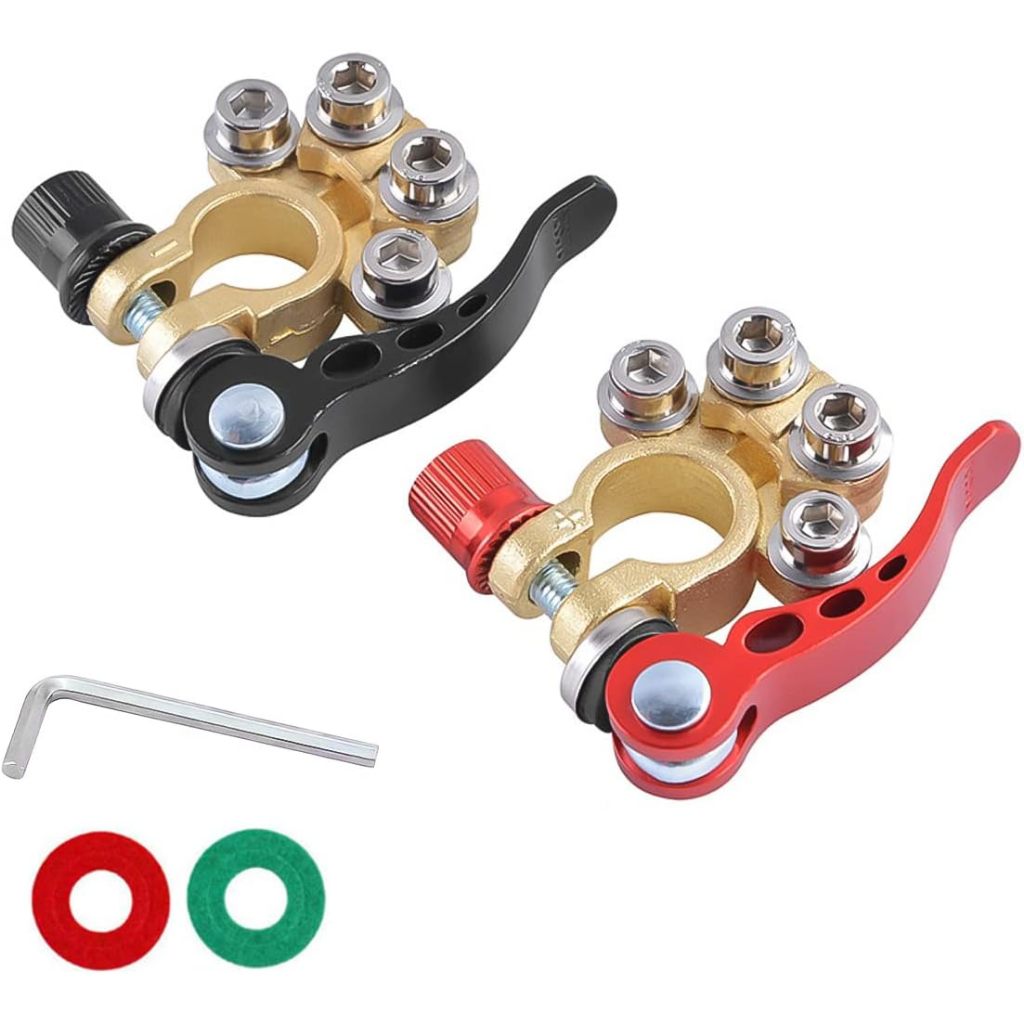 Car Battery Terminal Connector, 4 Way Positive and Negative Pole Quick Release Terminal Clip, Applicable to SAE/JIS A Type Terminal Post, Compatible with Cars, Trucks