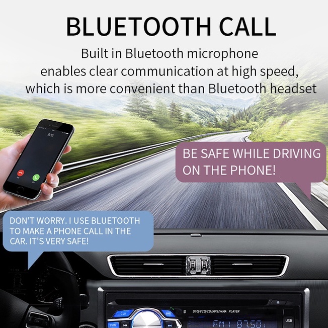 Car Bluetooth DVD Player 12V-24V Universal Built-in FM Stereo Radio Truck CD VCD MP3 Disc Reader Support Call Hands-free