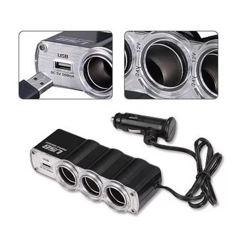 Car Cigarette Lighter Socket Splitter With USB Ports Multifunction Car Cigarette Lighter Power Plug Practical DC Power