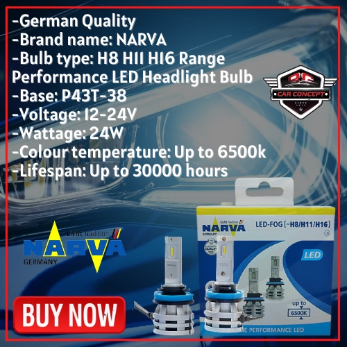 Car Concept Empire Original Narva H8 H11 H16 LED Headlight RPL Fog Set 6500K 24W Head Lamp Car Headlight Fog Lamp Kereta