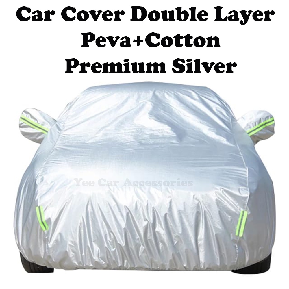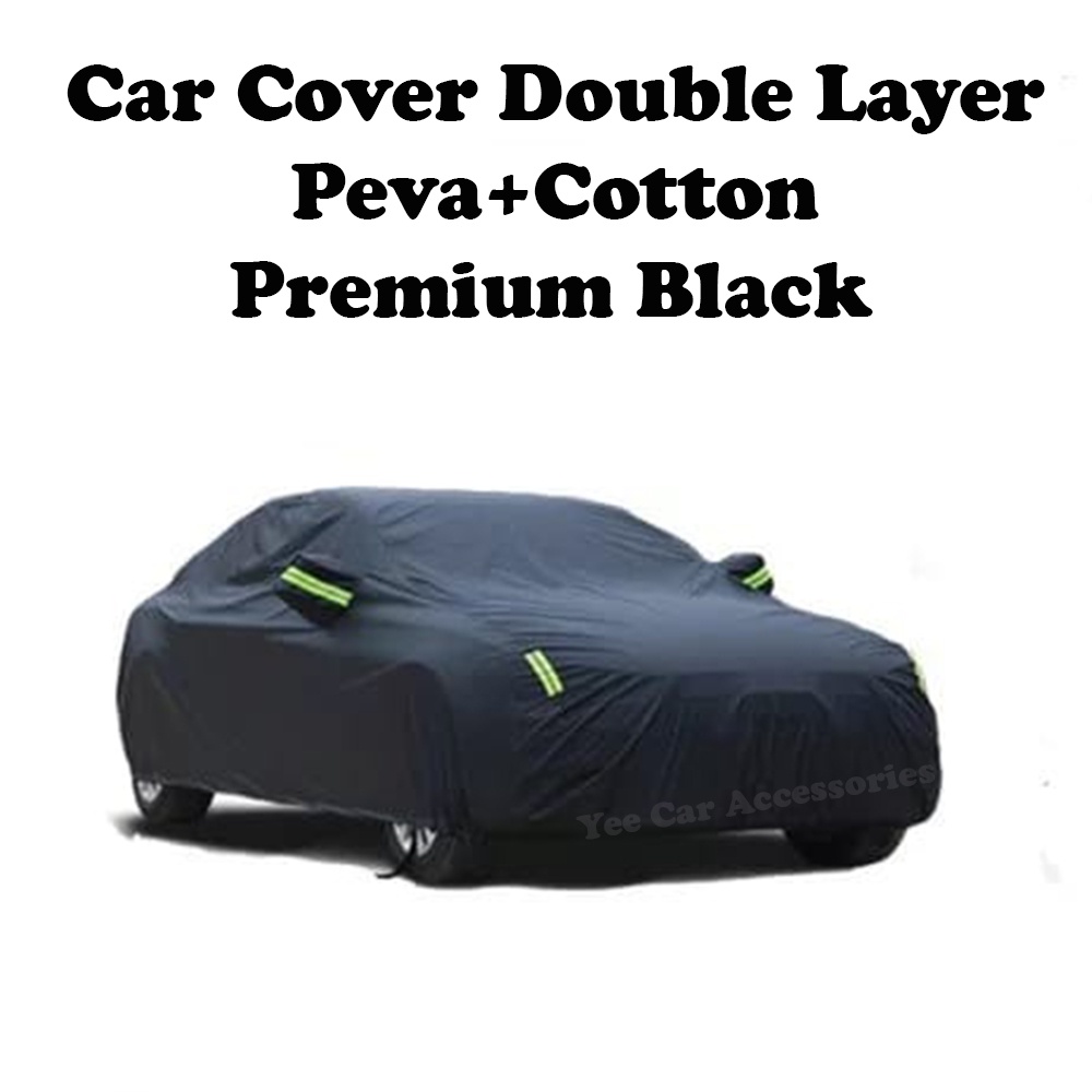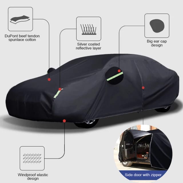 Car Cover Zipper Design Premium Black/Silver Double Layer High Quality PEVA + Spunlace Cotton Water Proof UV Protection