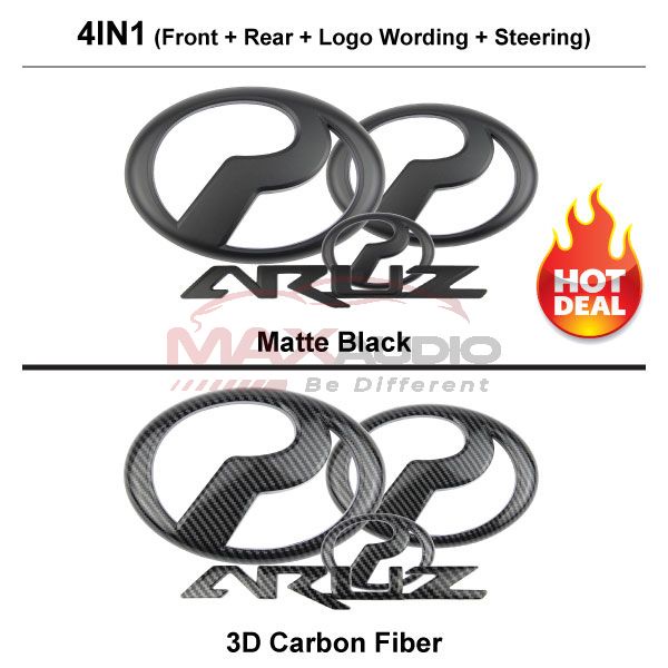 Car Emblem PERODUA ARUZ Logo Lambang Hitam Depan Belakang Sticker Emblem Aruz Matte Black Carbon Front Rear
