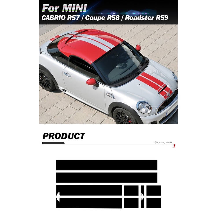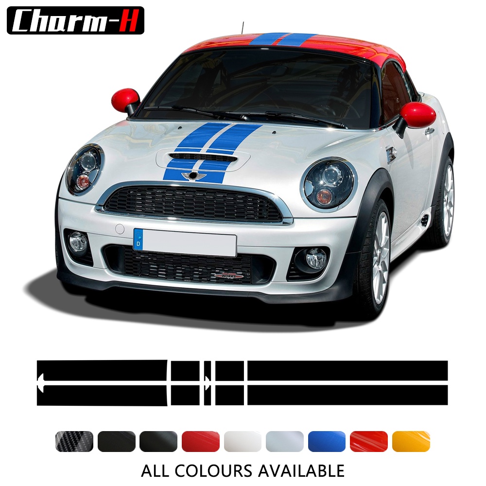 Car Hood Bonnet Stripes Sticker Engine Cover Roof Trunk Decal For MINI Cooper Coupe R58 Cabrio R57 Roadster R59 JCW Acce