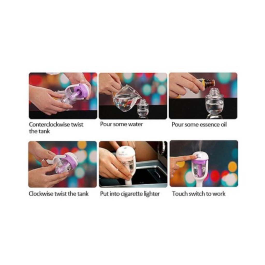 Car Humidifier Purifier Nanum Air Humidifier 360 Rotating Aromatherapy Air Refresher Car Perfume Pelembap Udara Kereta
