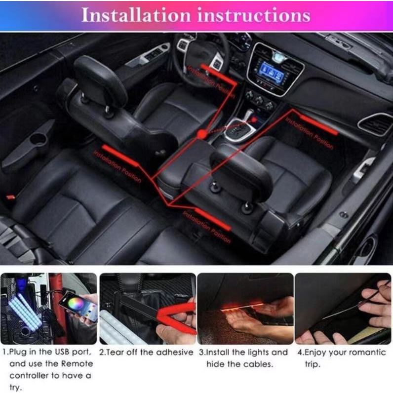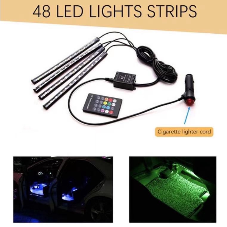 Car LED Wireless Remote Control Colorful RGB Car Interior Floor Atmosphere Light Strip Foot lamp SAGA BEZZA Myvi Alza