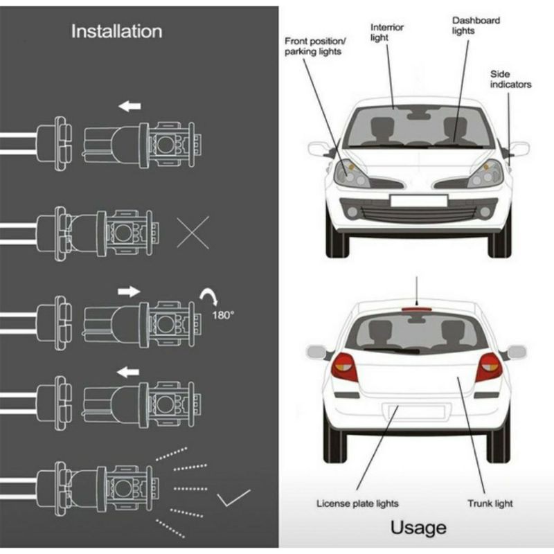 Car & Motorcycle T10 LED Bulbs 12v(1pc)