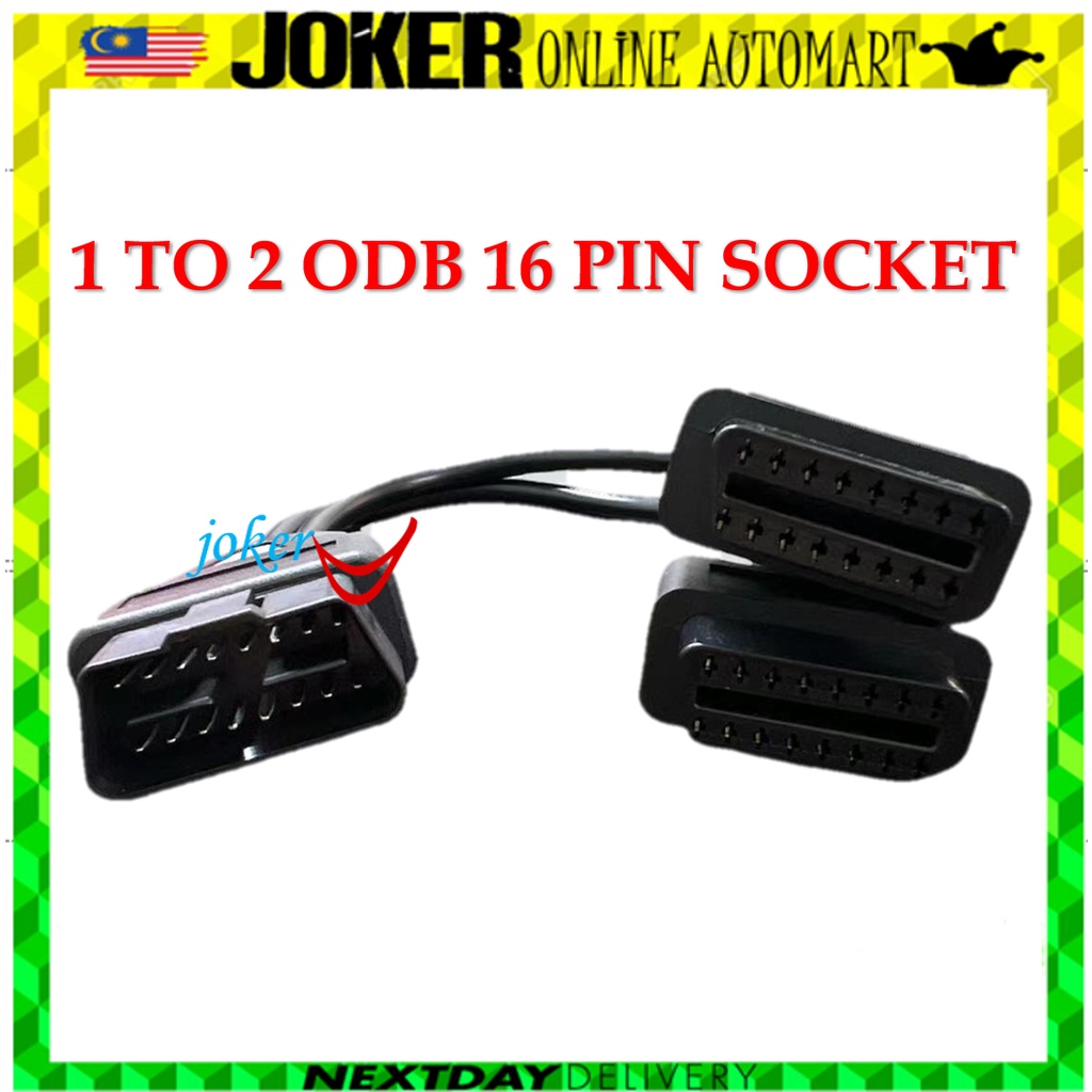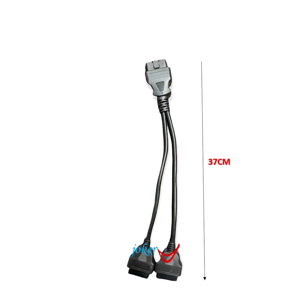 Car OBD Extension Cord 1 To 2 16 Pin Elbow Flat Wire Cable 37cm Female Y-Type Splitter Connector