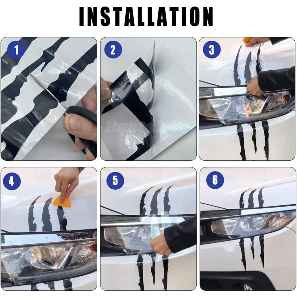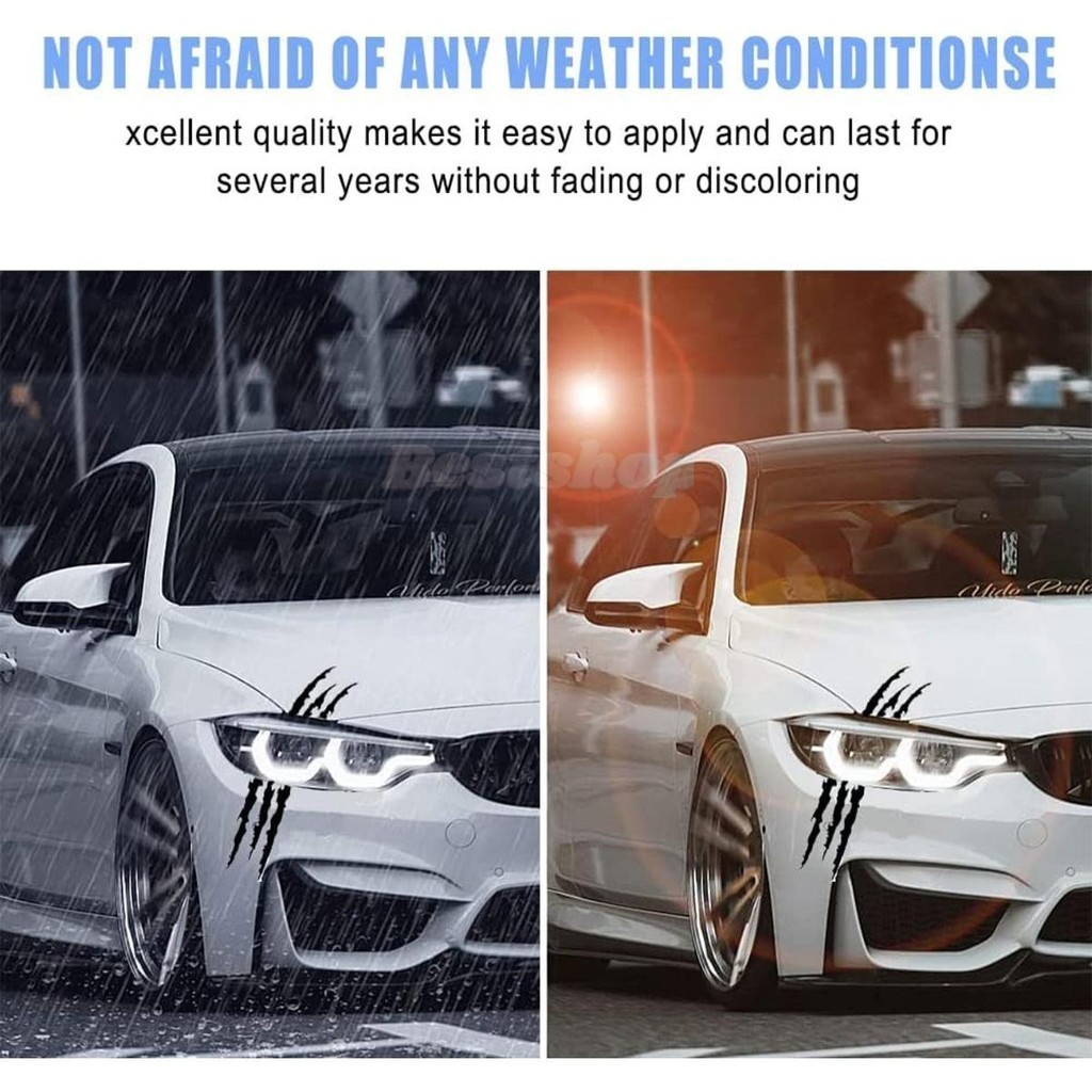 Car Sticker Claws Scratch,1/2Pcs Claw Mark Car Decal Black Claw Marks Headlight Decal Claw Mark Sticker Waterproof Monster Claw Scratch Decal for Car (Black)