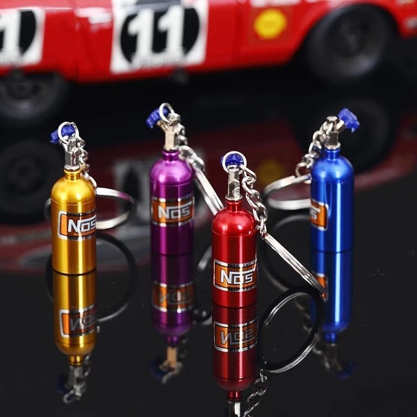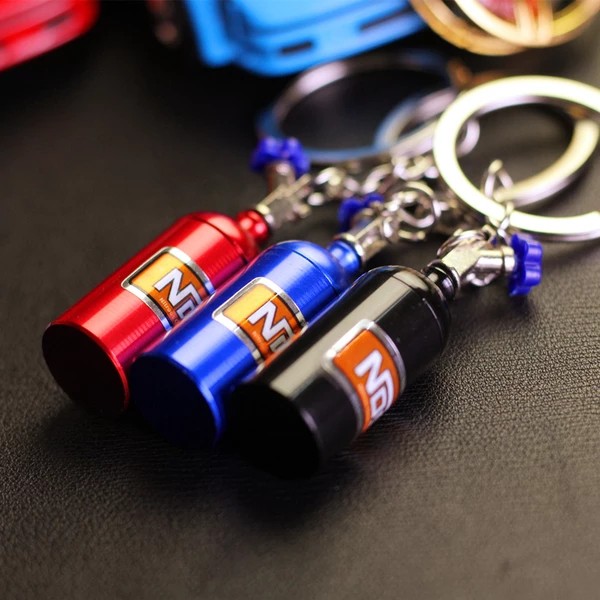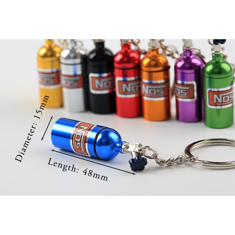 Car Turbo NOS Keychain Nitrogen Bottle Metal Key Chain Key Ring Stash Pill Box Storage