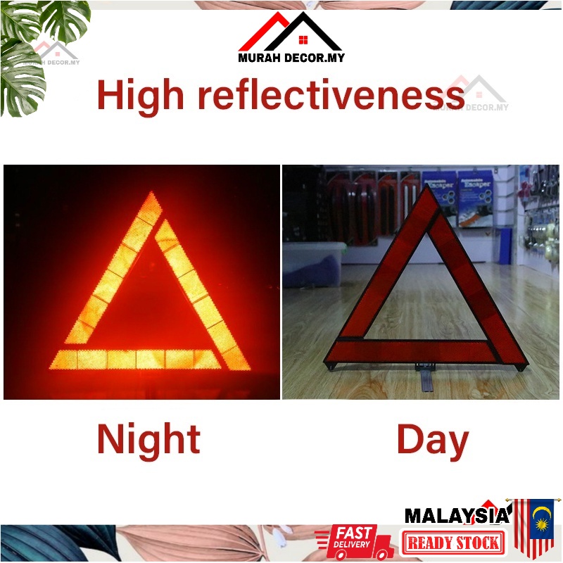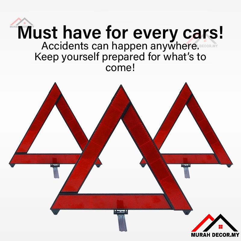 Car Warning Safety Road Triangle Bar Sign Emergency Reflective Kit Exclamation Mark Lampu Segitiga Kecemasan