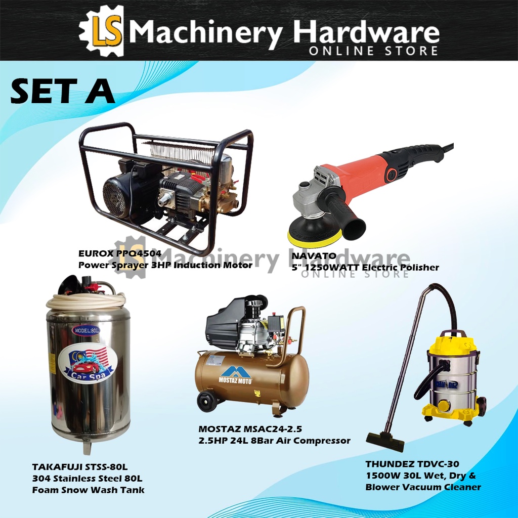 Car Wash Equipment Combo - (Water Pump, Snow Tank, Vacuum, Air Compressor & Polisher) - 6 Months Warranty