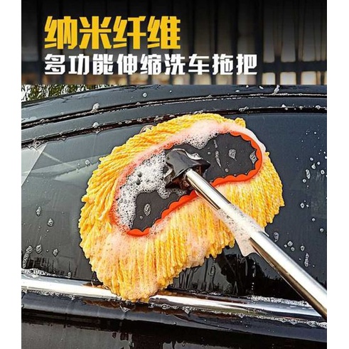Car Wash Extendable Mop Car Nano Fiber Mop Nano Brush Fibre Auto Kereta High Absorbtion Wiping Soft Maggi Mop - Yellow