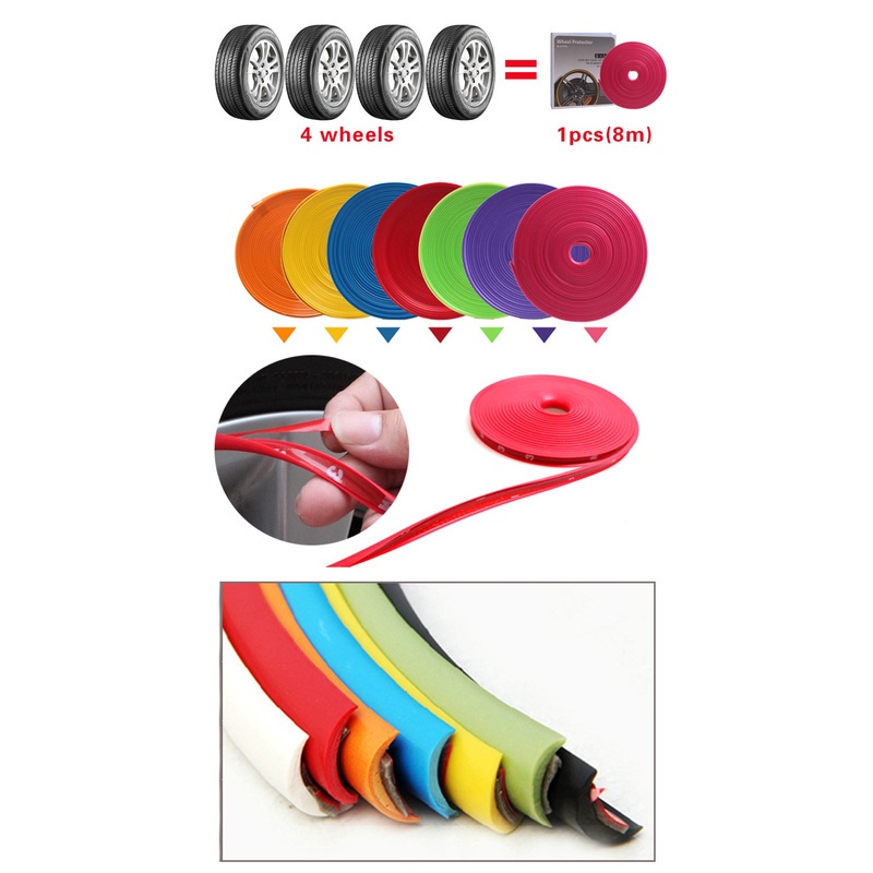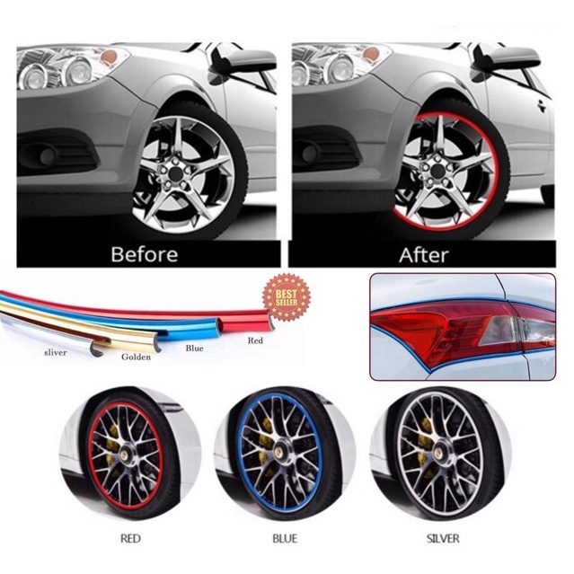 Car Wheel Rims Strip Sticker Chrome Wheel Decor Auto Tire Rims Protector 8M Plated Strip Contour Strip Molding Trim Myvi