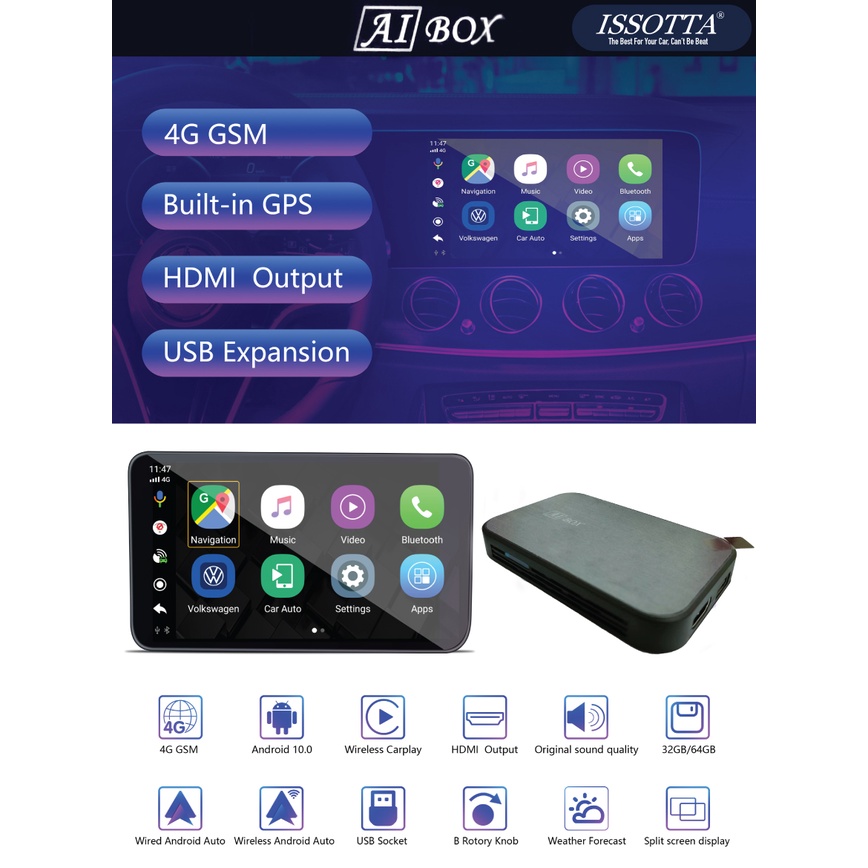 CarPlay AI box 4GB ram 64GB rom Android System in Car / wireless apple car play & android auto/ playstore