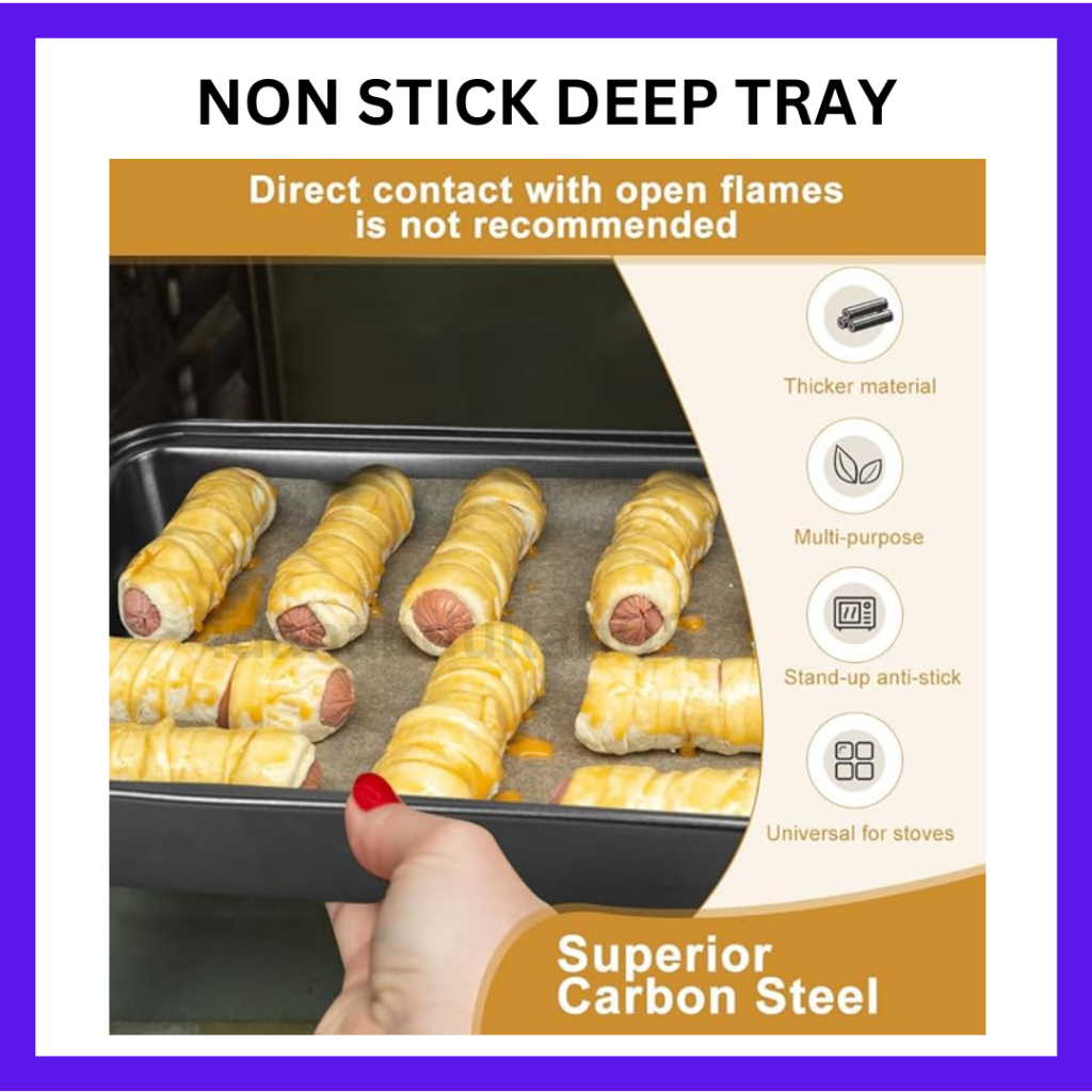 Carbon Steel Non-Stick Deep Square Tray Toaster Oven Tray for Home Baking, Dishwasher Safe Deep Cookie, Bread, Lasagna