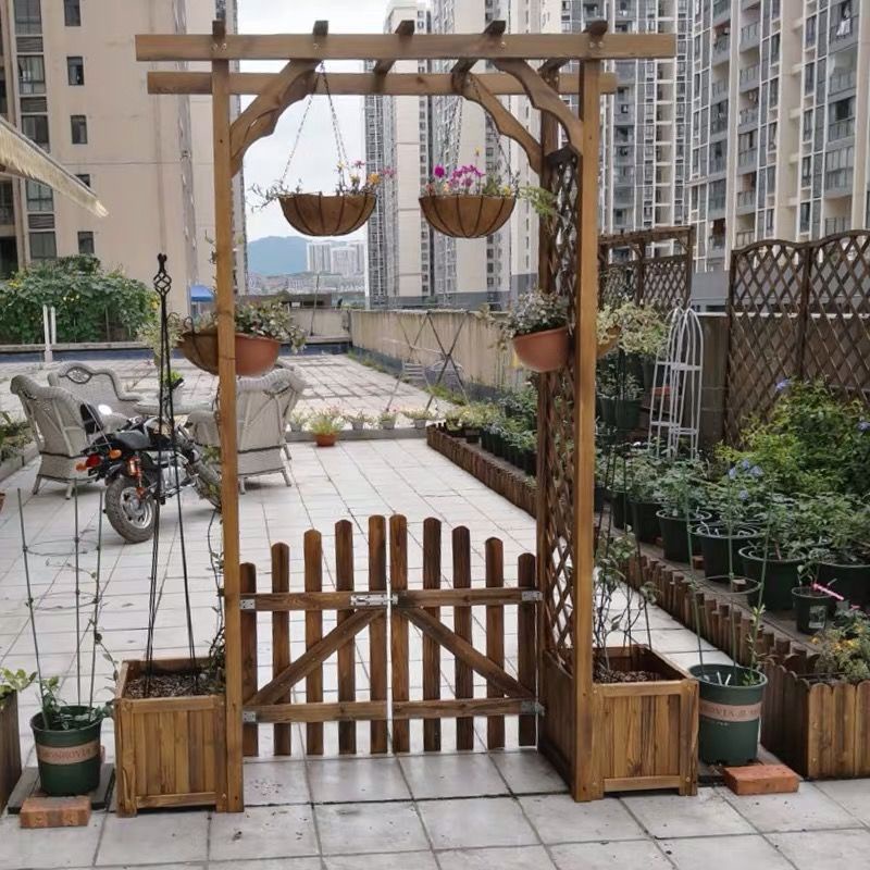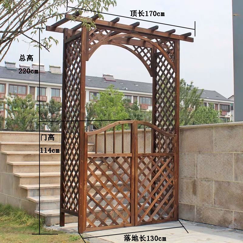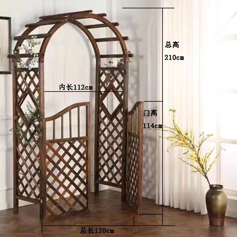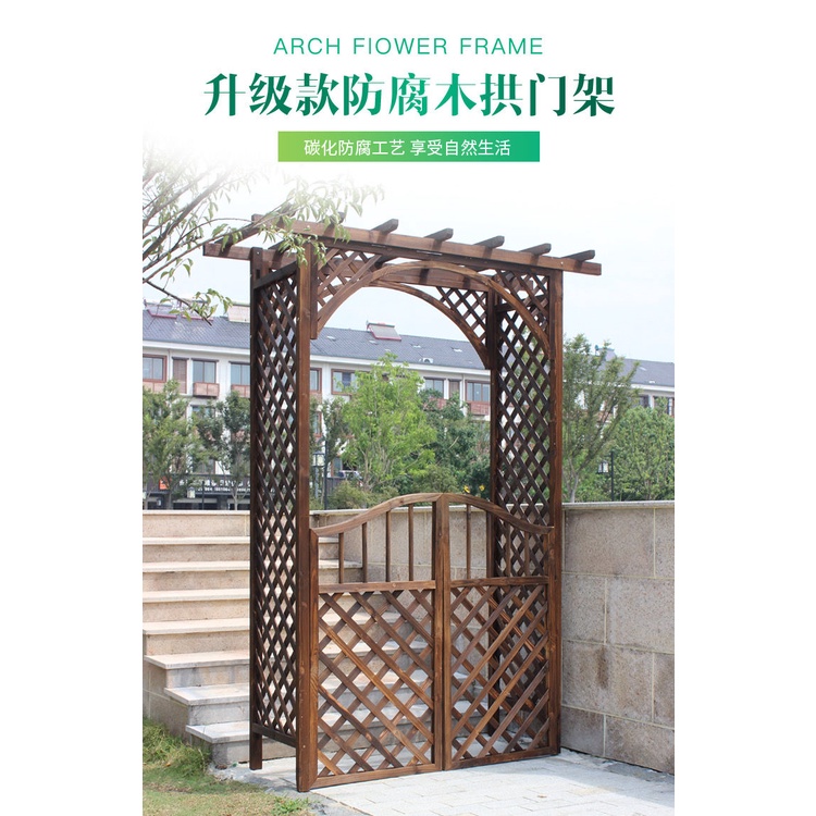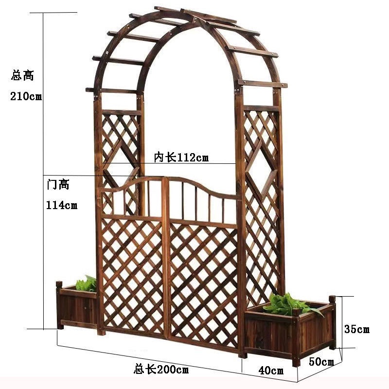 Carbonized Antiseptic Wood Arch Flower Rack Climbing Vine Stand Solid Wood Arch Courtyard Grape Rack Outdoor Garden Door