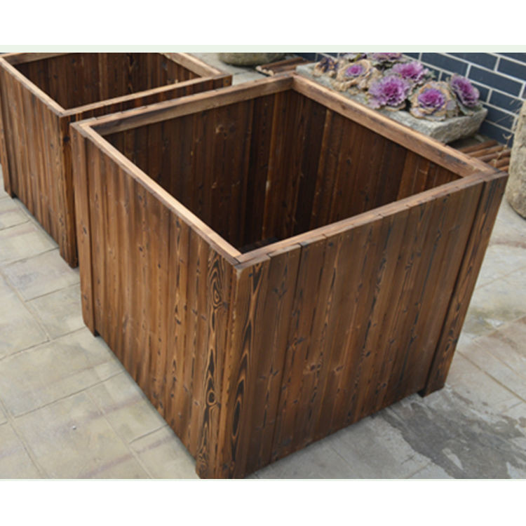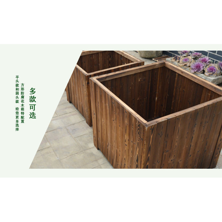 Carbonized Preservative Wooden Flower Box Balcony Vegetable Box Indoor Outdoor Courtyard Wooden Solid Wood Flower Box Square Flower Pot