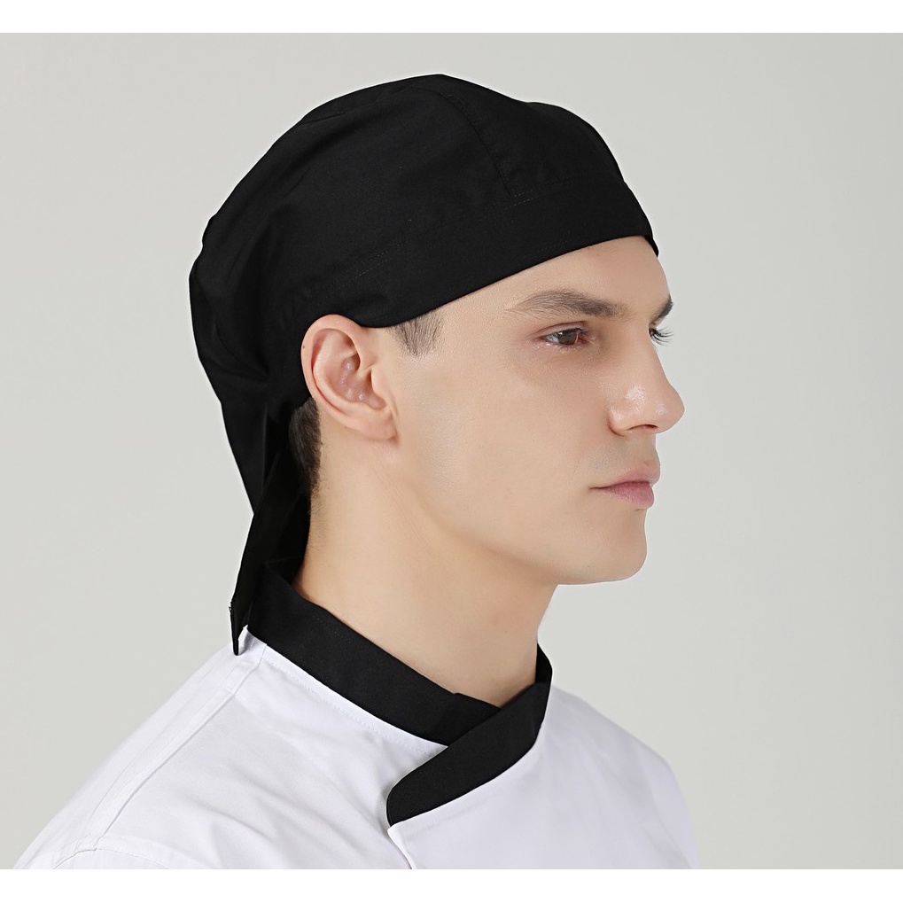 Caribbean Black Chef Hat/Kitchen Skull Cap Professional Hat/Topi Chef Lelaki/Catering Ribbon Cap Turban Bandana Chef