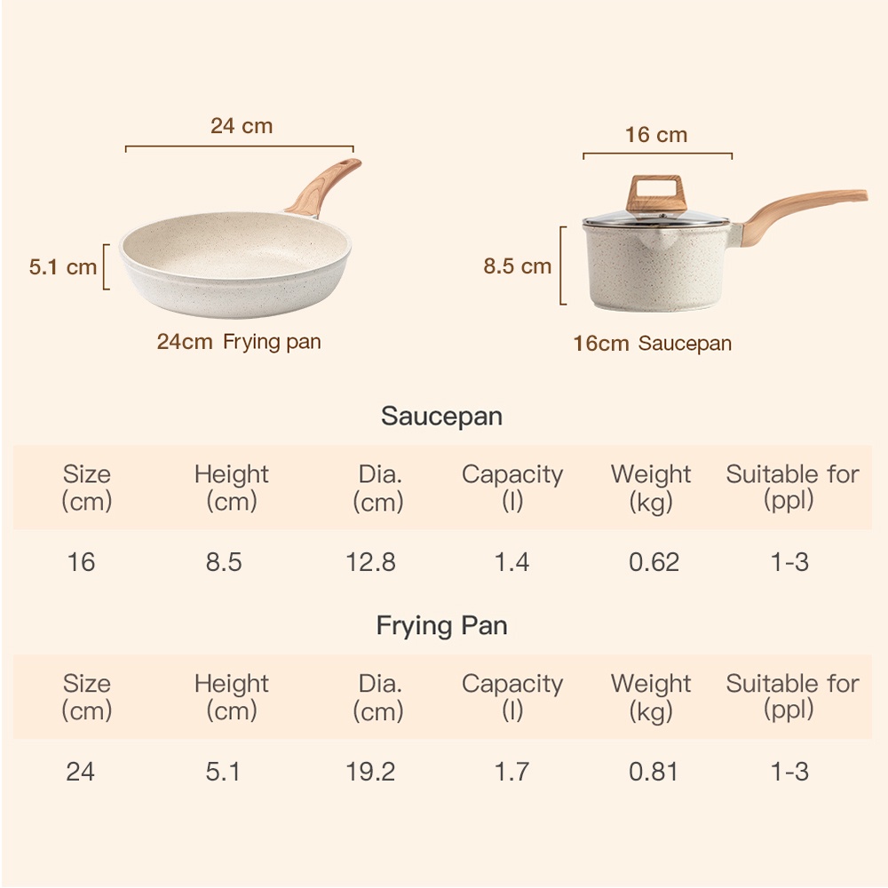 Carote IceCream Non Stick Frying Pan 20/24/28cm, PFOA Free Non-Stick Coating Fry Pan, Suitable All Stove