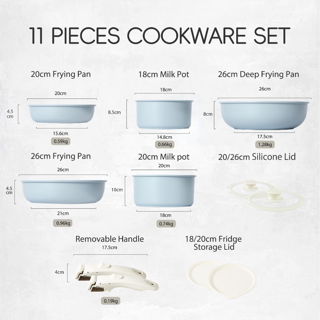 Carote Nonstick Cookware Set Gradient Blue 11Pcs Handle Removable Non-stick Frying Pan Wok Suit All Stove Induction
