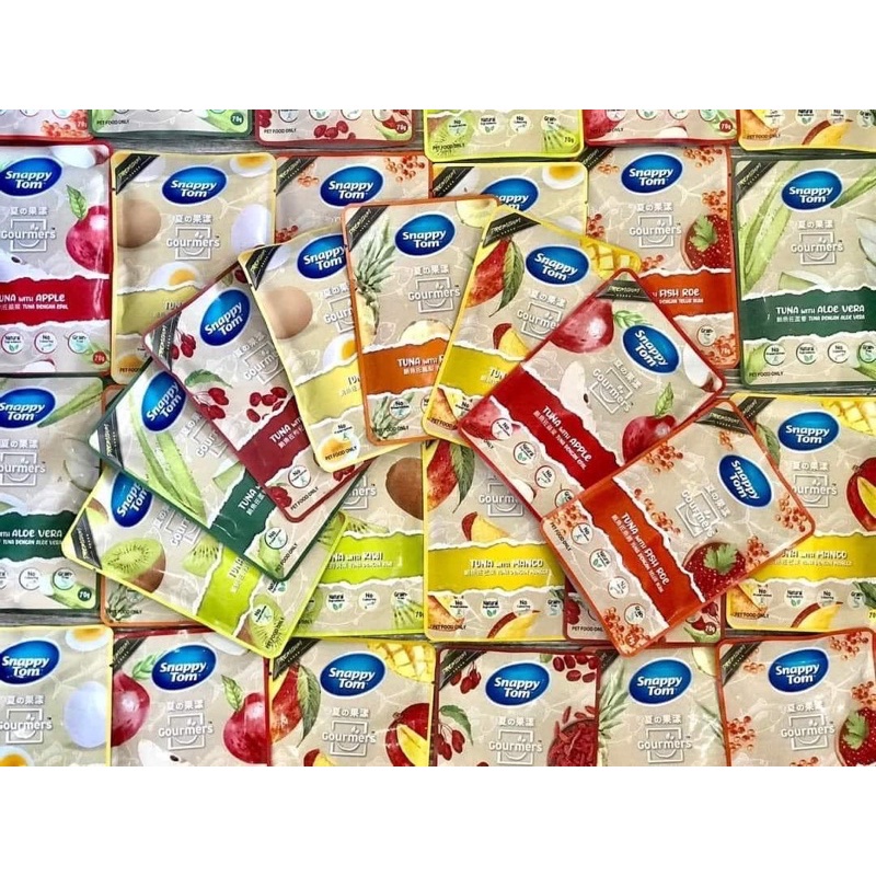 Carton of 24 packs of Snappy Tom fruit pate