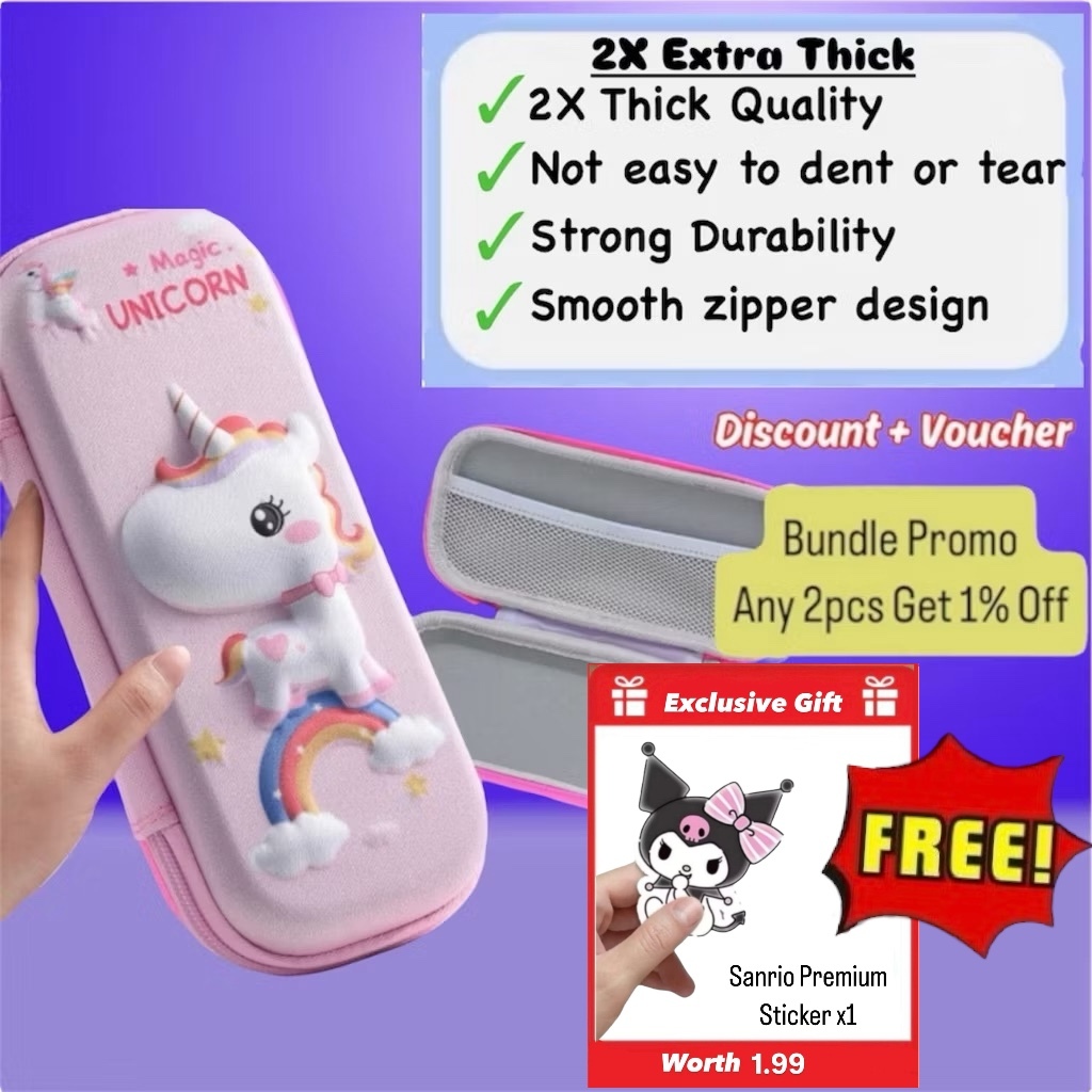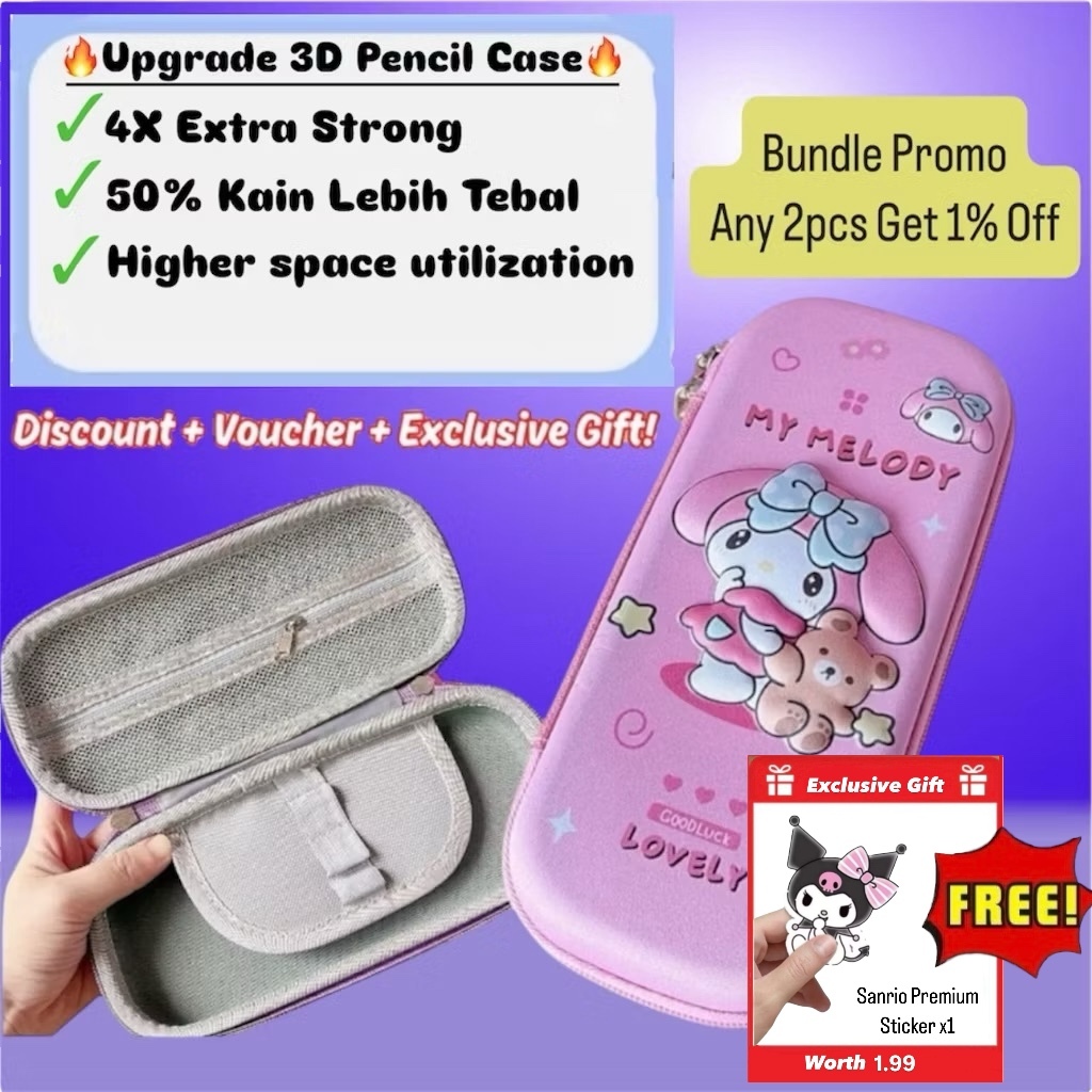Cartoon 3D Pencil Box Waterproof Pencil Case Kotak Pensil Cartoon Stationery Cute