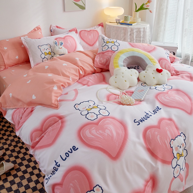 Cartoon 4 in 1 Bedding Set Duvet Quilt Comforter Cover Flat Bed Sheet Pillowcases Super Single Queen King Size
