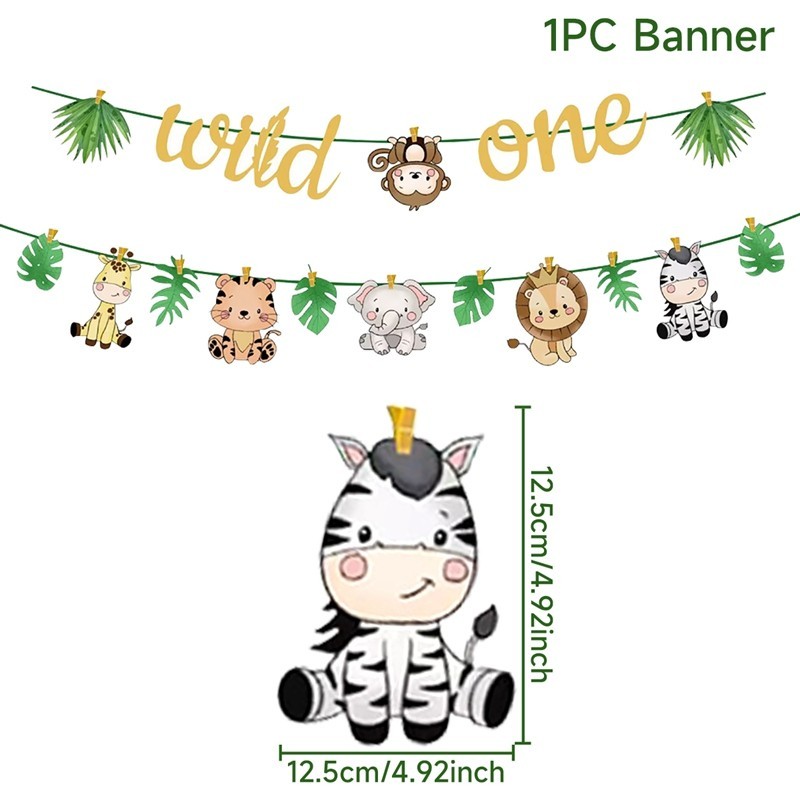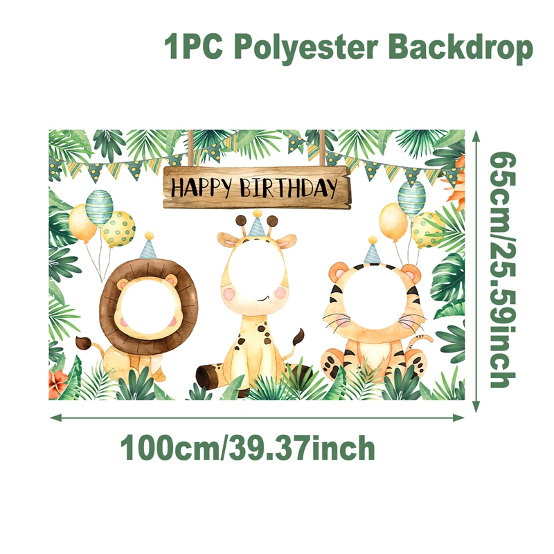 Cartoon Animal Happy Birthday Banner Safari Theme Party Decoration Tribal Boy Girl Theme Supplies Kids Favor 1st Birthday Decor