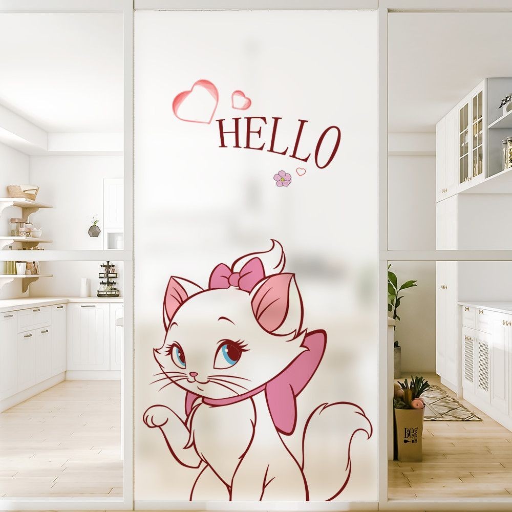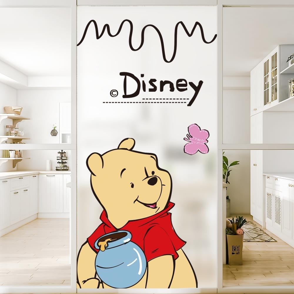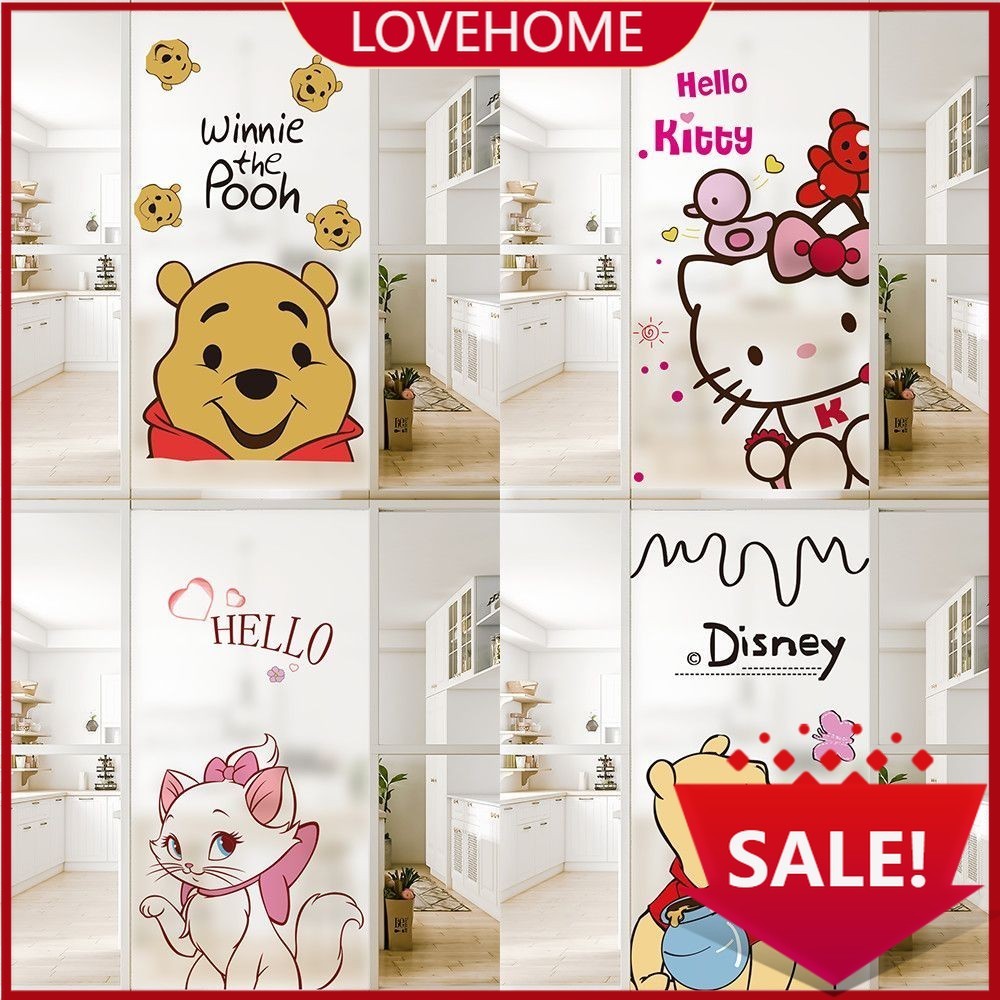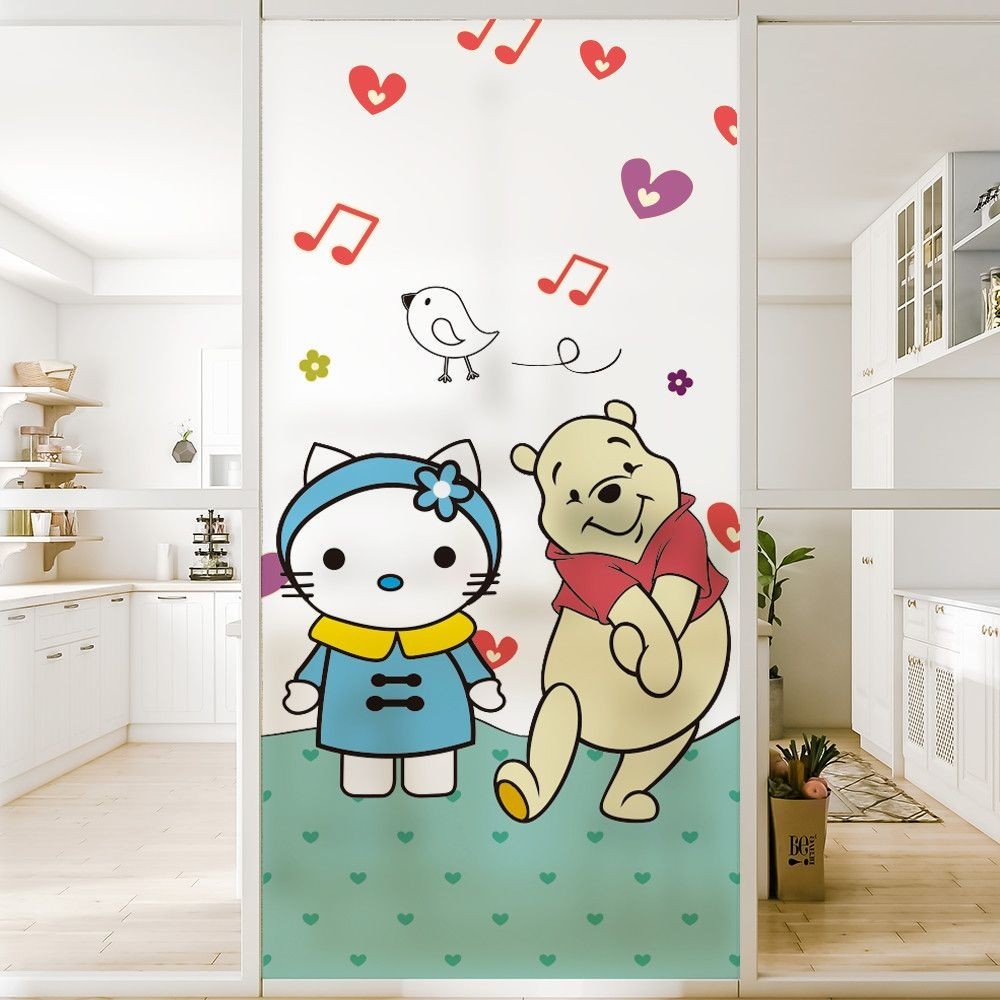 Cartoon Anti Peeping Glass Sticker Hello Kitty Pooh Bear Glue Free Bathroom Bedroom Living Room Sunscreen Frosted Electrostatic Film PVC Waterproof Wall Sticker Wallpaper