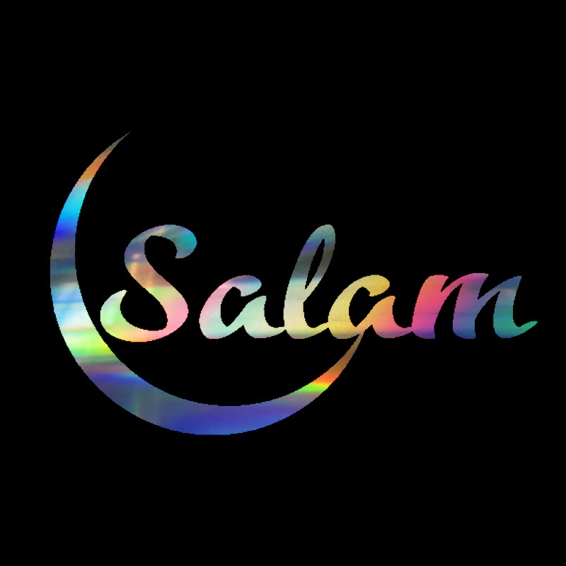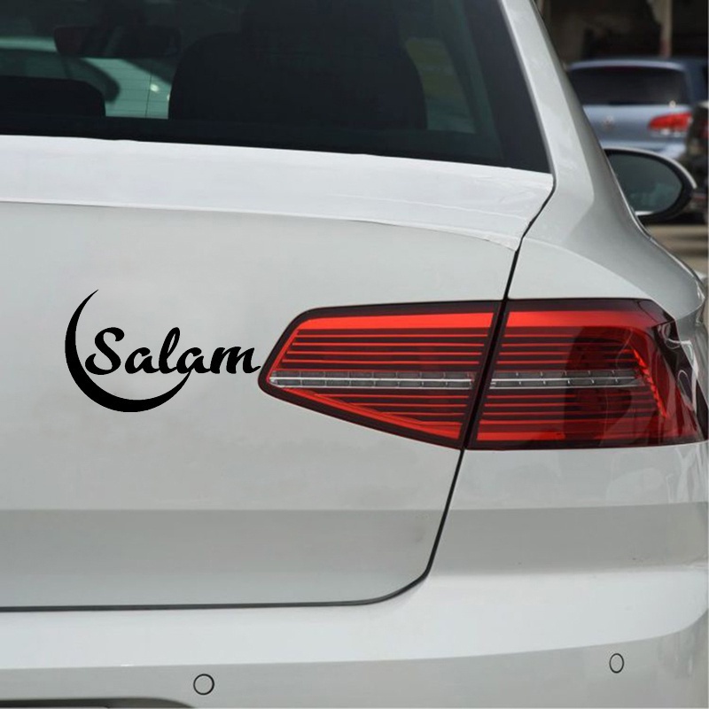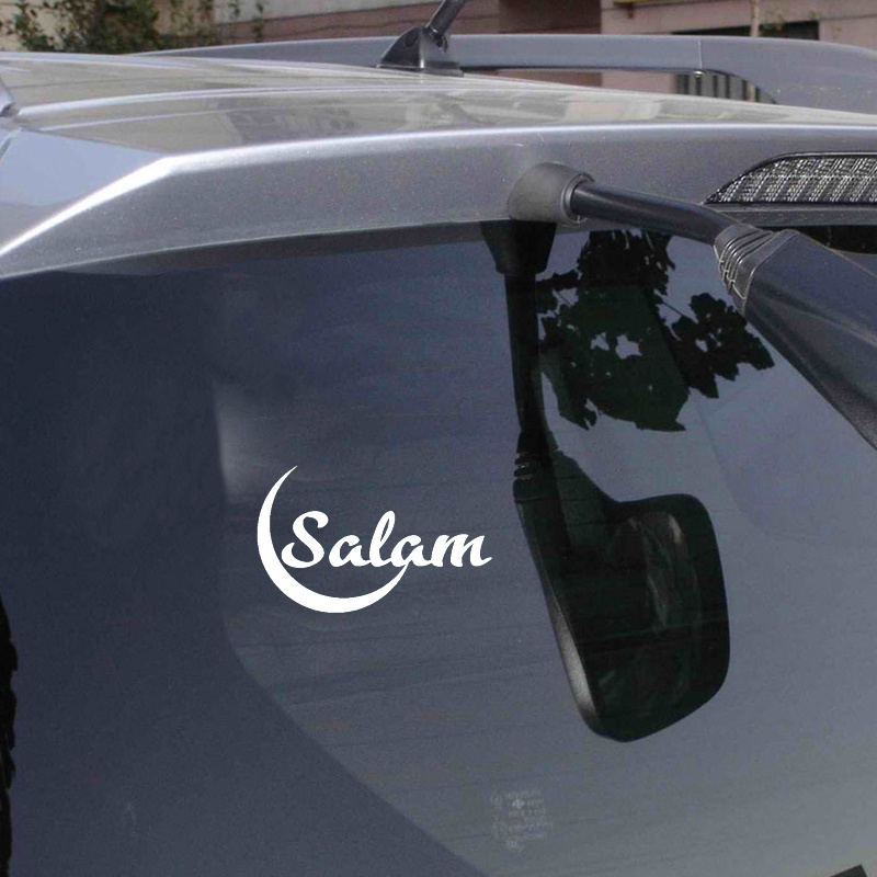 Cartoon Arabic Islamic Salam With Moon Art Waterproof Calligraphy Rear Windshield Stickers Car Stickers Motorcycle Parts Vinyl Decals Home Decoraton stickers Bumper Decals Door