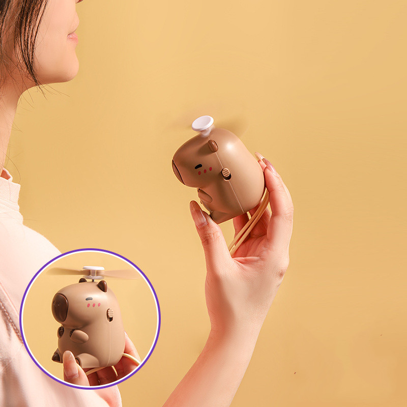 Cartoon Capybara Hanging Neck Fan Mini Handheld Usb Rechargeable Fan Student Portable Small Fan