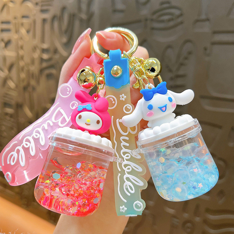Cartoon Cartoon Acrylic Glitter Bottle Keychain Oil Liquid Bathtub Drift Bottle Cute Key Pendant Bag Accessories