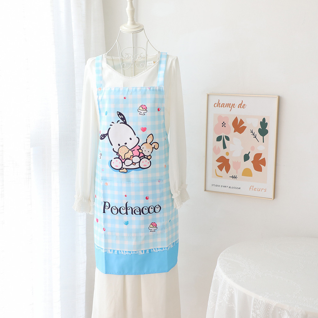 Cartoon Cartoon Kitchen Apron Waterproof Apron Cute Kuromi Pacha Dog Printed Apron Waterproof Antifouling Easy-to-Clean Apron Apron Waist Skirt Cotton H-Shaped Apron Work Apro