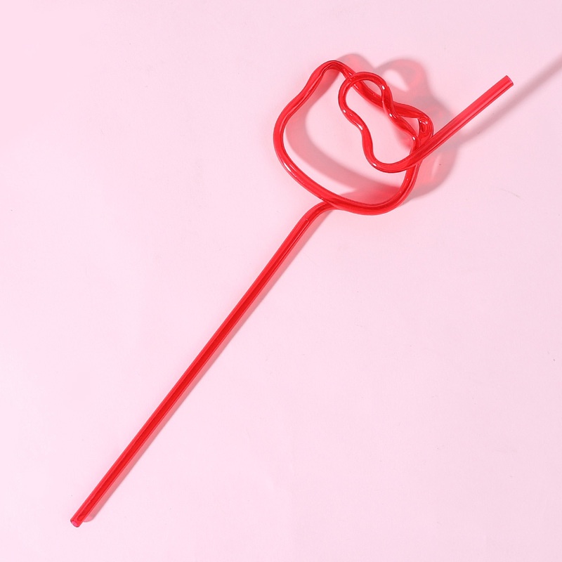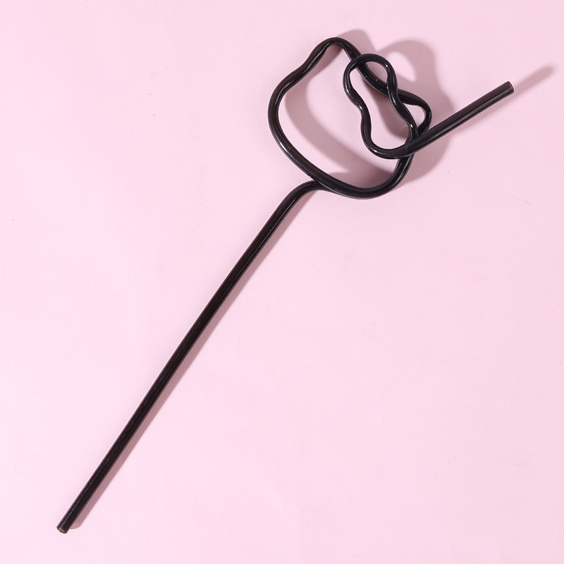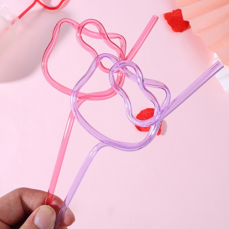 Cartoon Cat Head Shape Drinking Straw/ Cute Girl Heart Pink Cat PET Plastic Straw/ Kids Birthday Girls Party Tableware