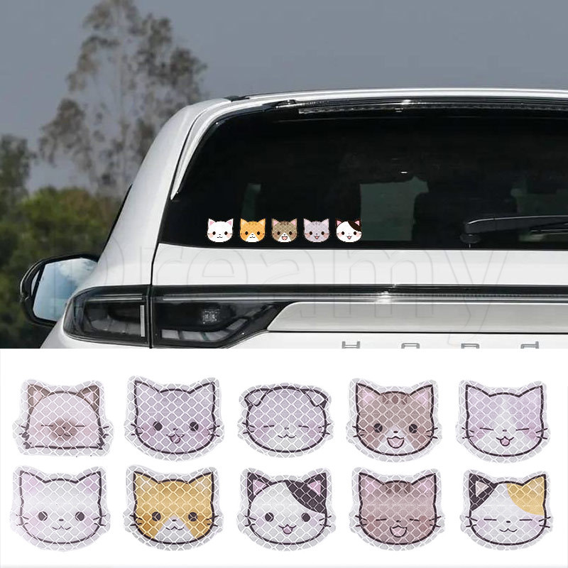Cartoon Cat Reflective Car Stickers - Personalised Decorative Decals - Anit-Scratches Warning Self-adhesion - For Electric Car Helmet Motor Cycle - Automobile Exterior Decoration