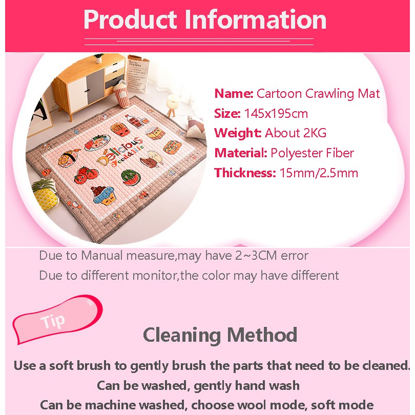 Cartoon Cotton Playmat Children's Thickening Baby Play Mat Crawling Mats Large Living Room Baby Mats 145x195cm Baby Play Mat for Floor with Storage Bag