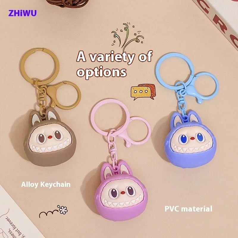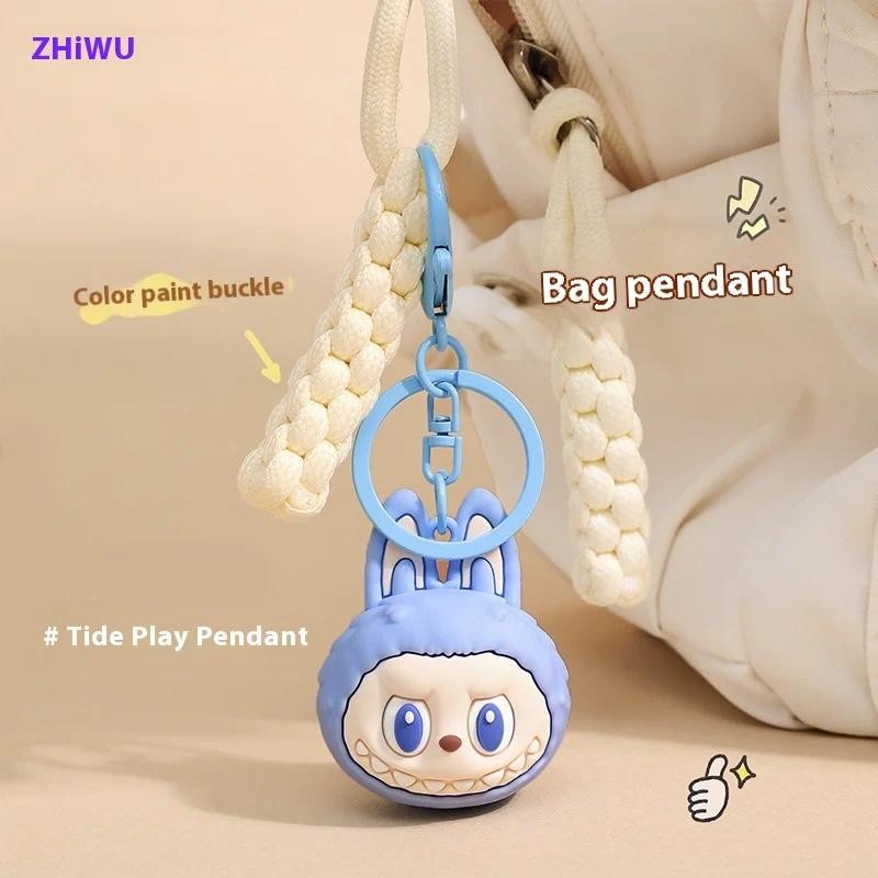 Cartoon Labubu Keychain Cute Wooden Horse Couple Student Backpack Pendant Decoration