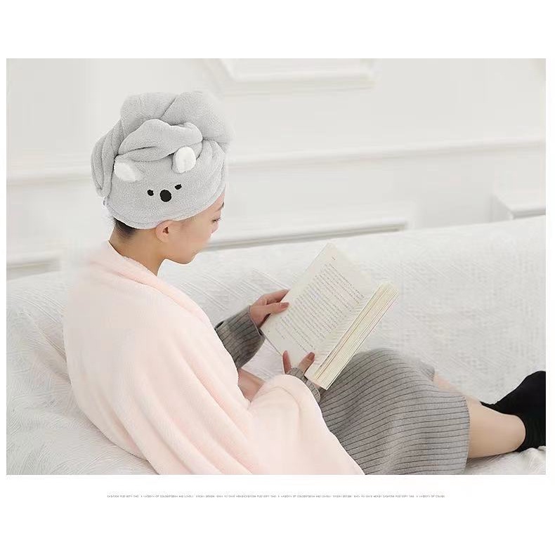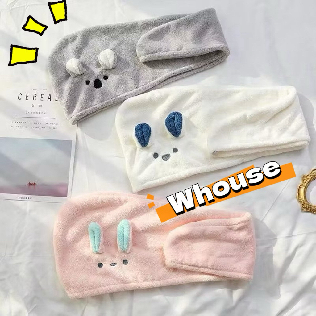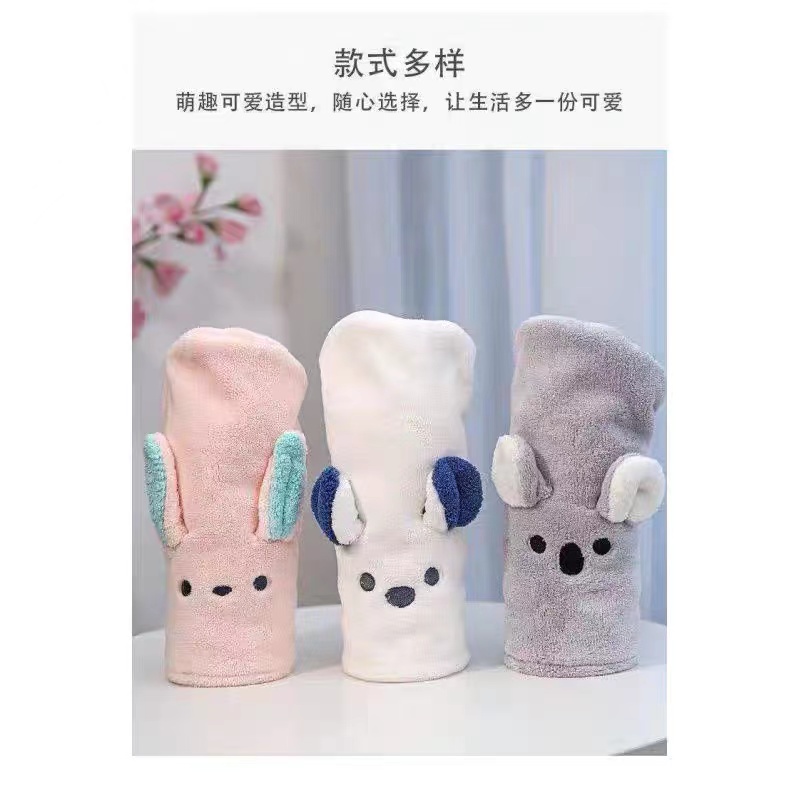 🥰Cartoon Microfiber Hair Towel Wrap Water Absorption Thicken Dryer Cloth Hat日韩卡通兔耳朵干发帽微米纱三角巾浴帽珊瑚绒超级吸水干发巾