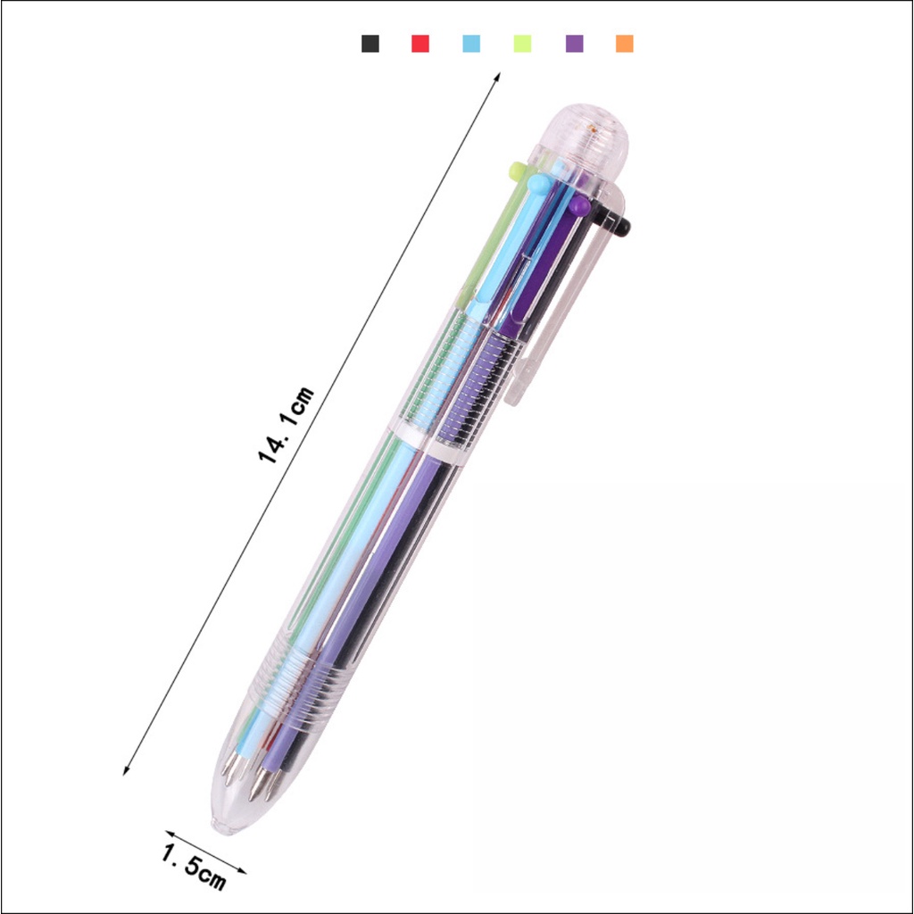 Cartoon Multicolor Ball Pen Push Colour Pen Stationery 6 Color Msia Seller Transparent Multi Colours Ink Fun Pen
