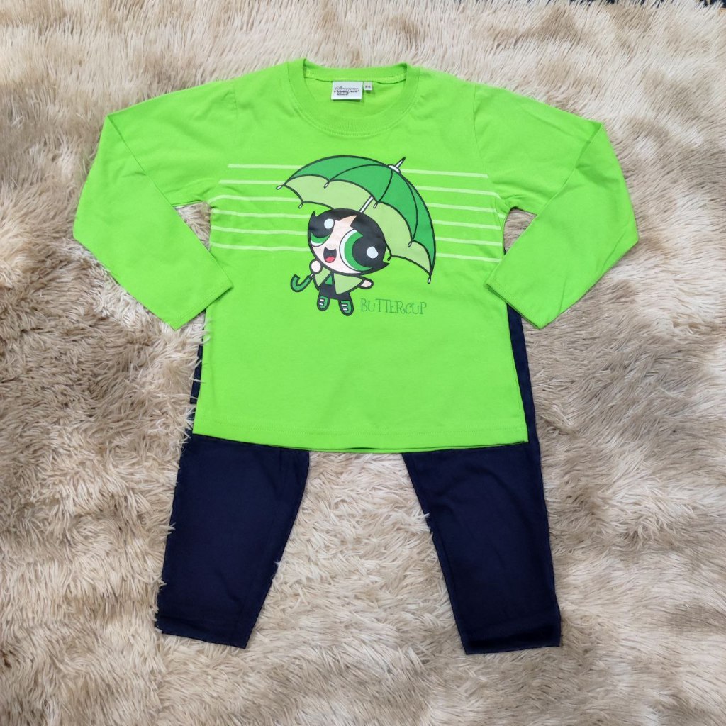 Cartoon Network (5-10 tahun) Long Sleeveless Pyjamas With Long Pants Baby Girl "Powerpuff Green"- Set Pyjamas