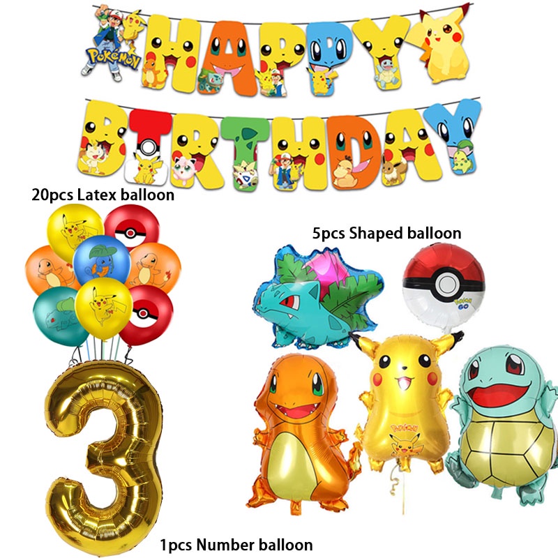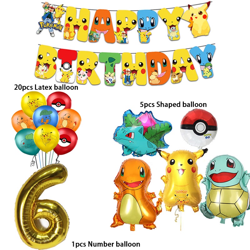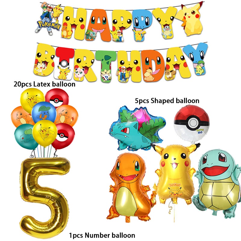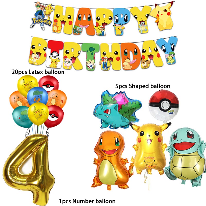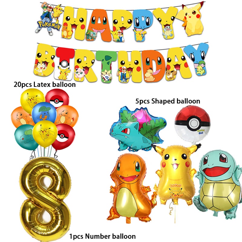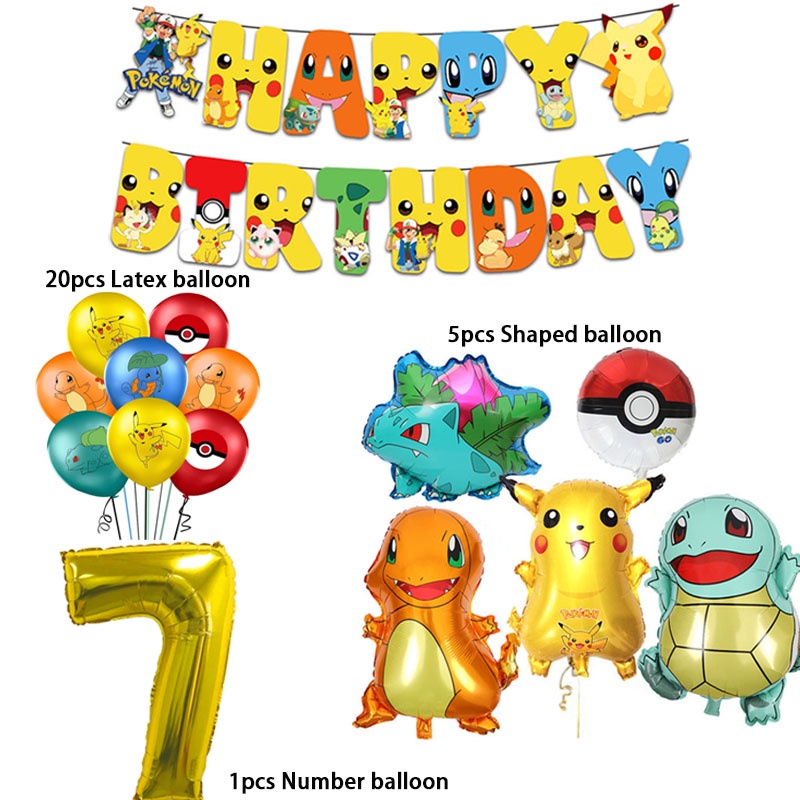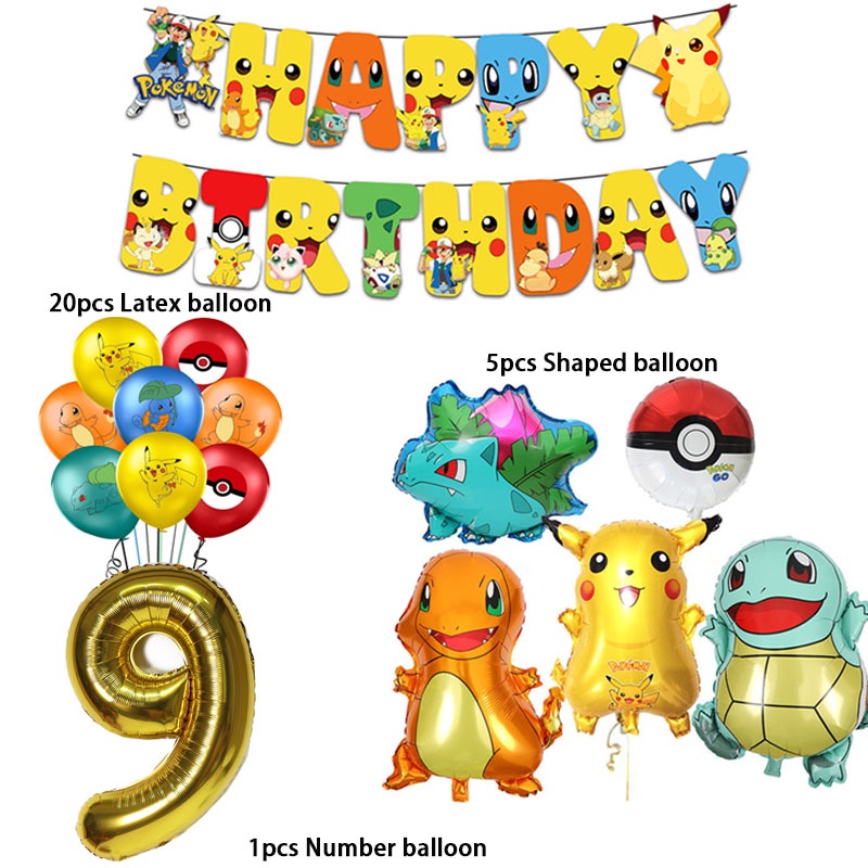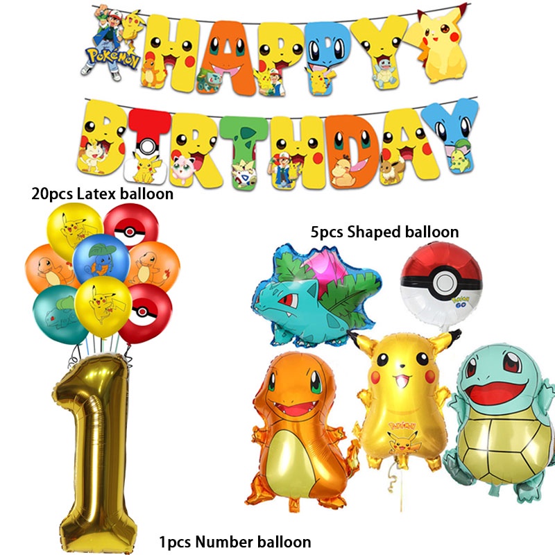 Cartoon Pikachu Balloons suit Pokemon Birthday Decorations Party Disposable Kids Supplies Toys for Children Baby Shower
