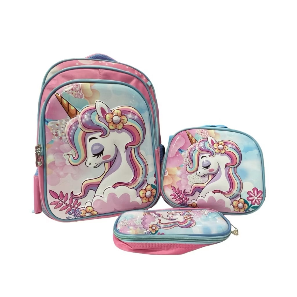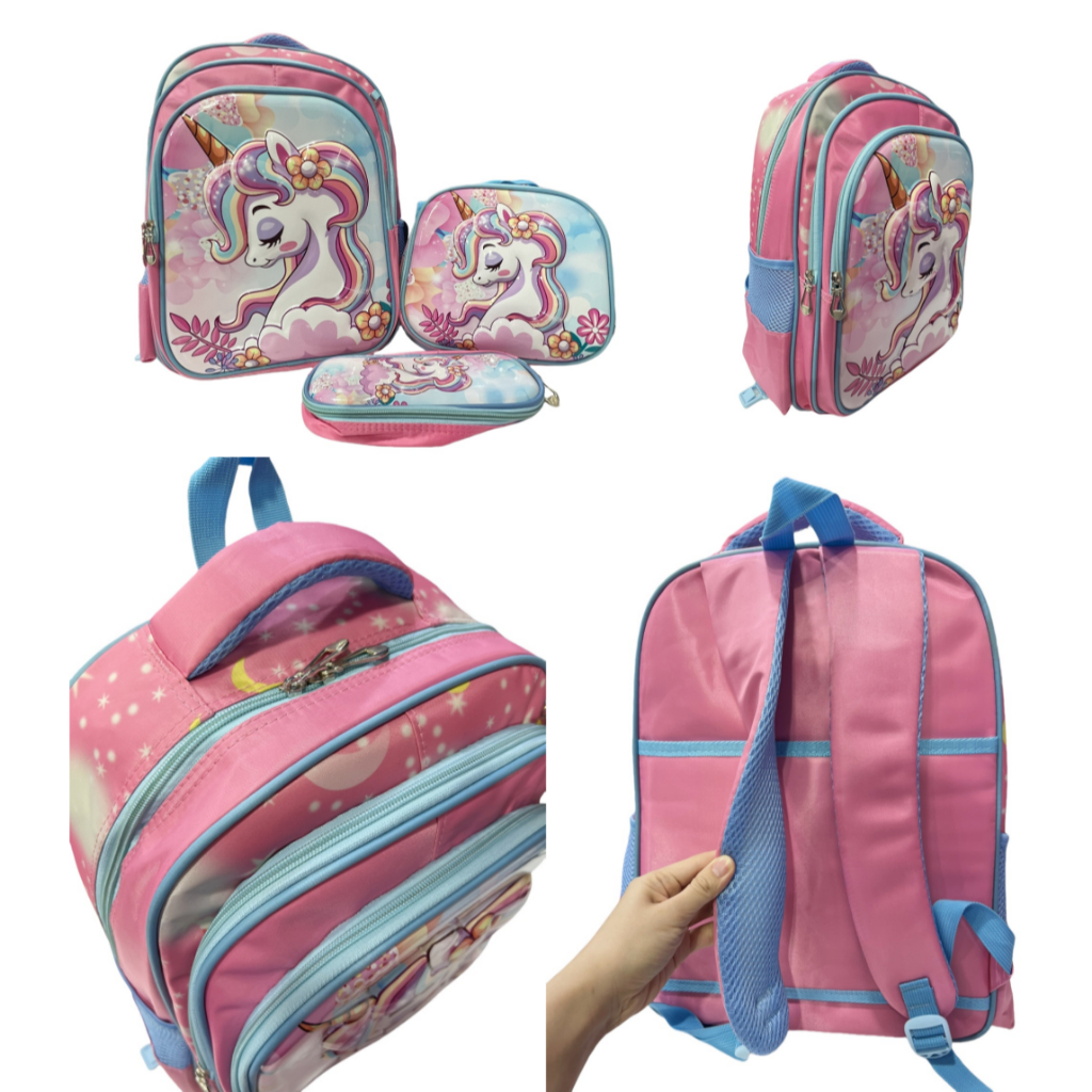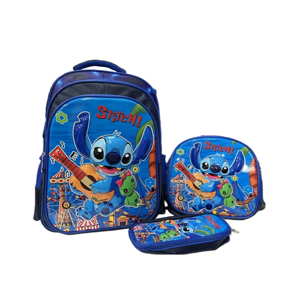 Cartoons Stitch KPop Demon Hunters Tung Sahur School Bag 3in1 Set Backpack Can Insert To Trolley