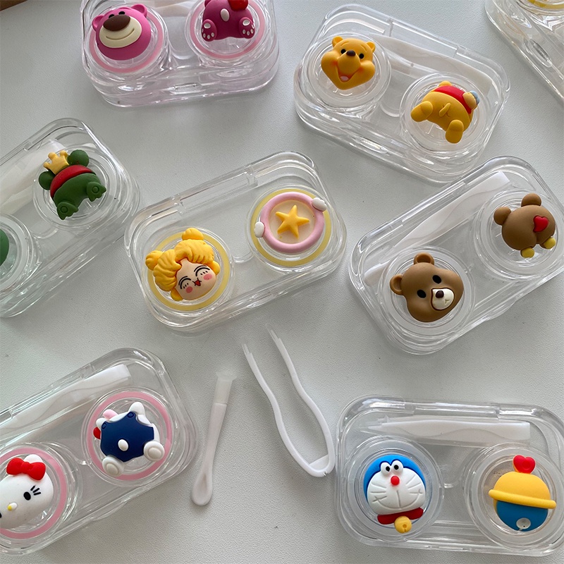 Cartoon Transparent Contact Lens Case Storage Box Contact Lens Container Portable Contact Lens Box Eye Care Kit Set Portable Travel Set