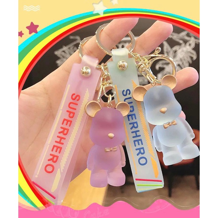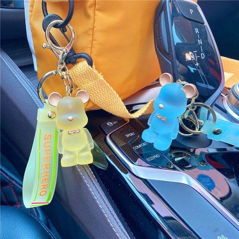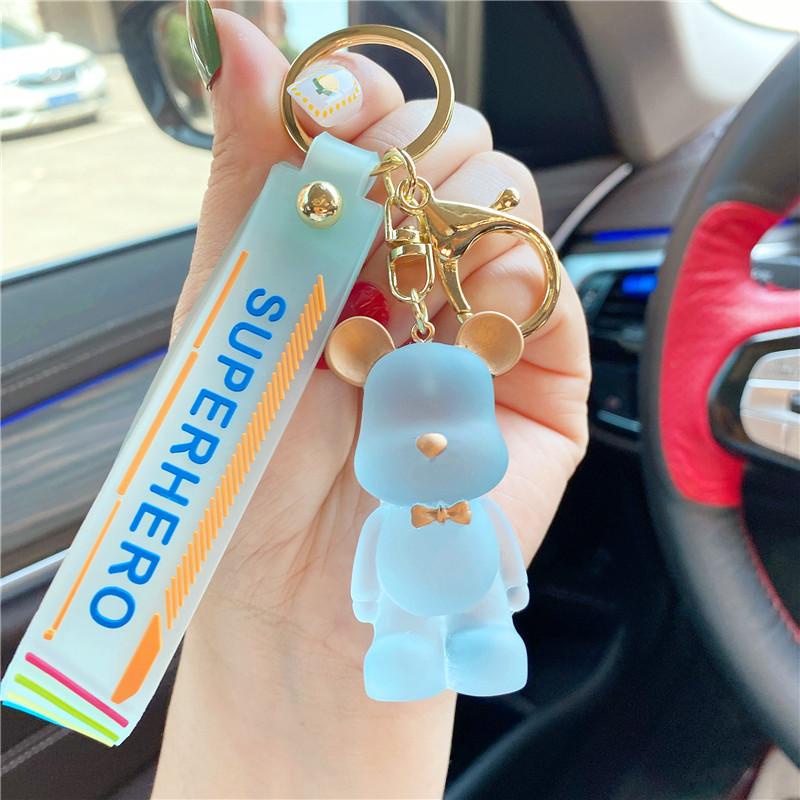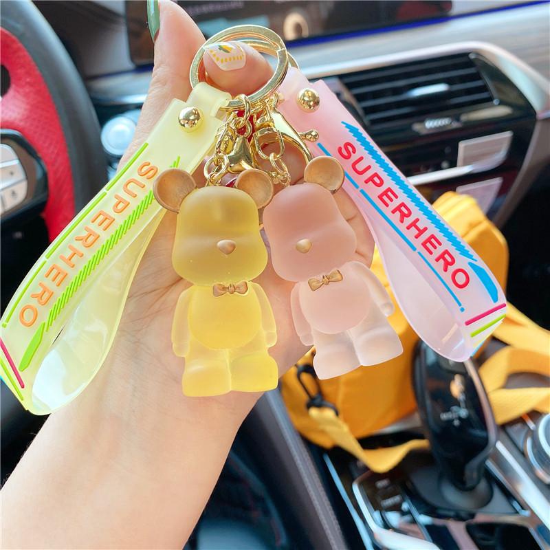 Cartoon crystal bearbrick keychain transparent car bear brick key ring bag wallet keychain