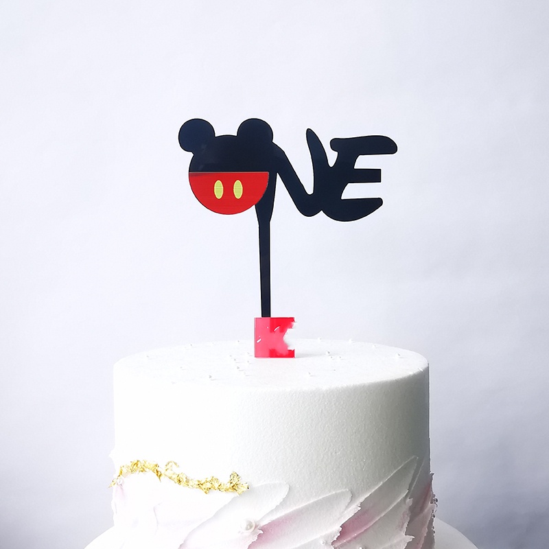 Cartoon minnie Micke Happy Birthday Cake Topper Acrylic Cute mouse Cupcake Topper for Kids 1st Birthday Party Cake Decorations Baby Shower