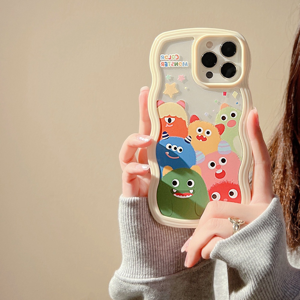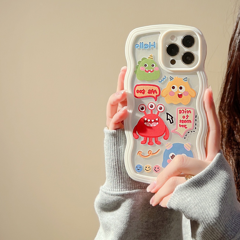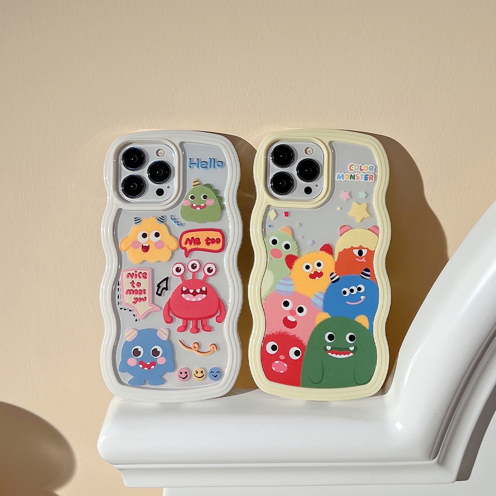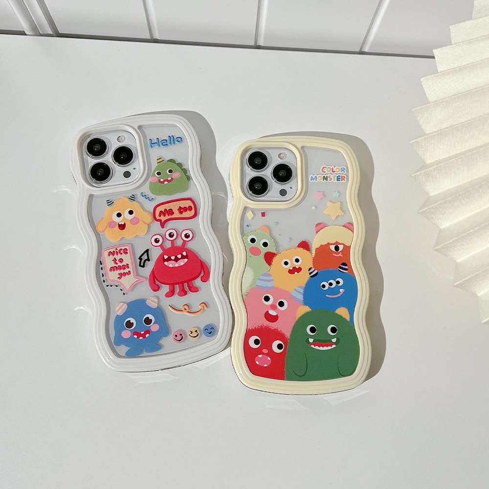 Cartoon wavy edge couple's little monster phone case tpu silicone for apple iphone 11 12 13 14 15 pro max plus x xr xs max