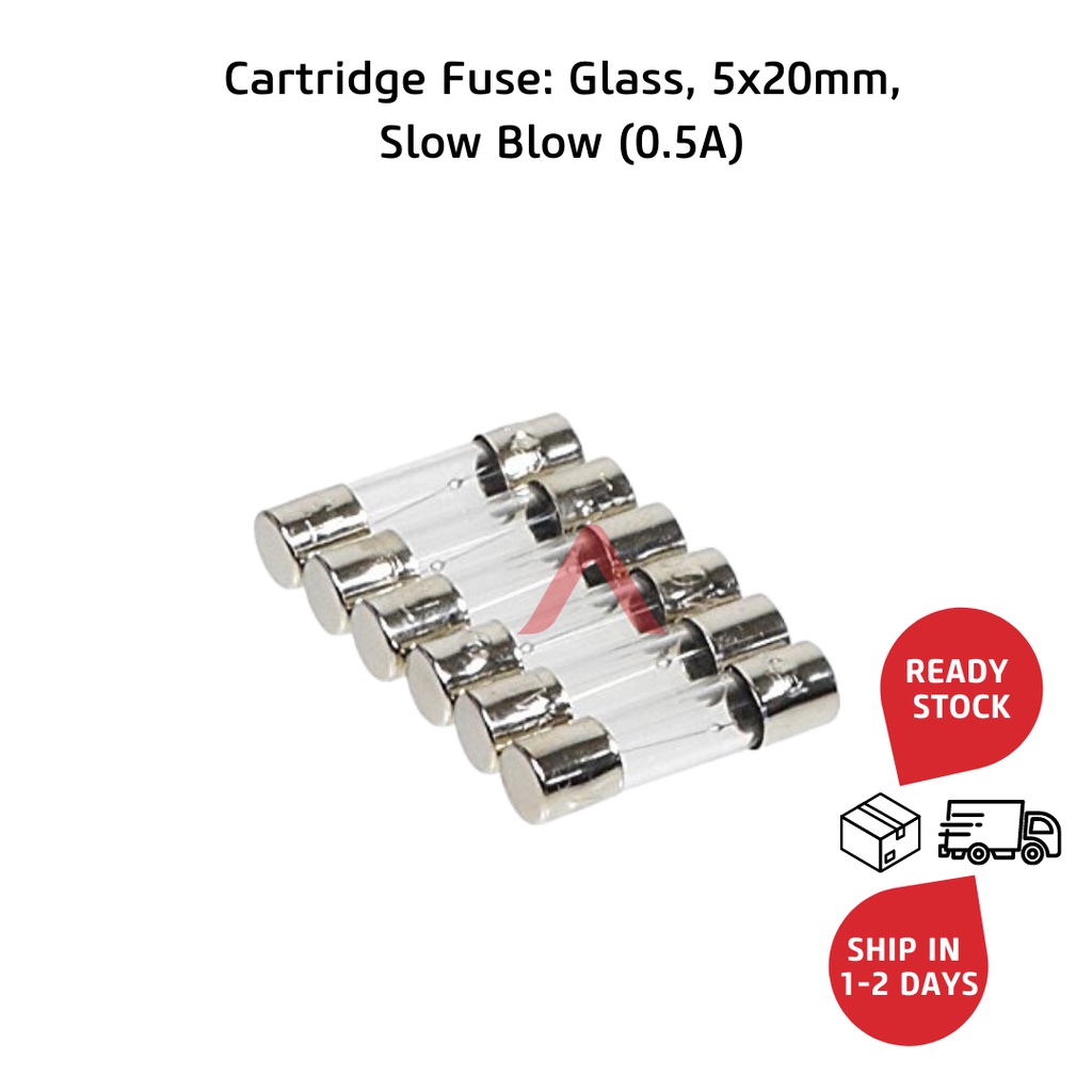 Cartridge Fuse: Glass, Slow Blow 0.5A, 250V (5 x 20mm)