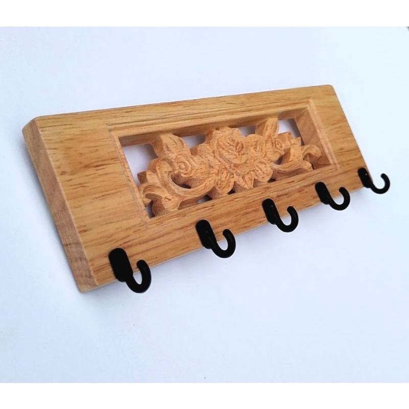 Carved Style Wooden Hook key Hanger Wall Hanging Rack Decorative Rak kunci